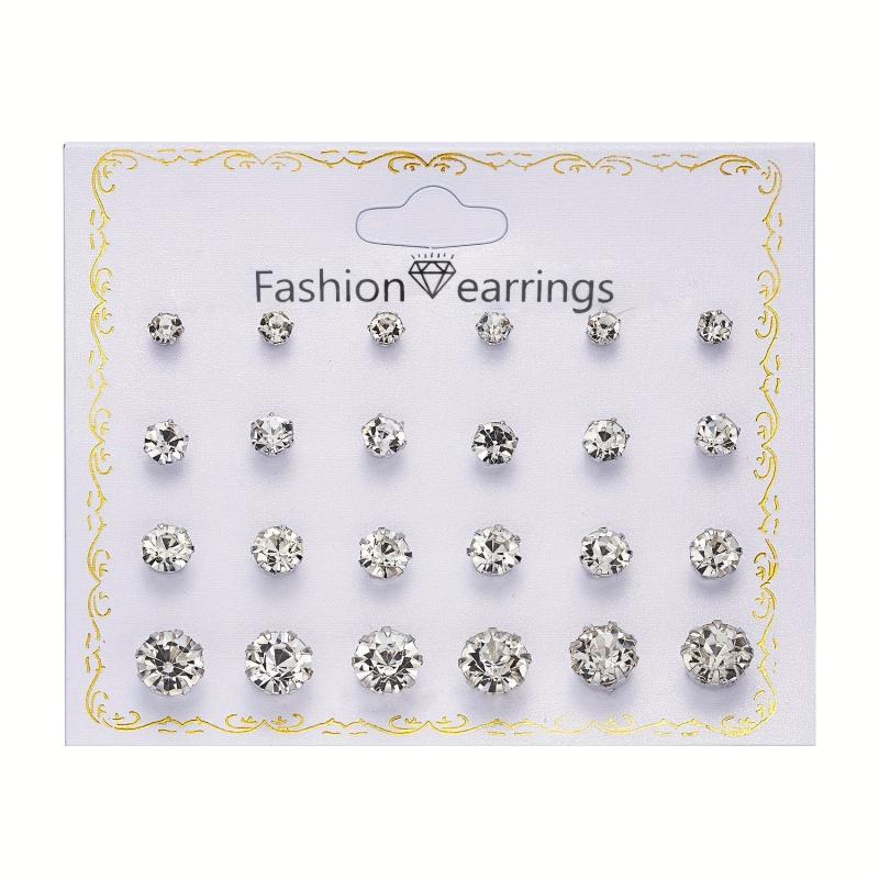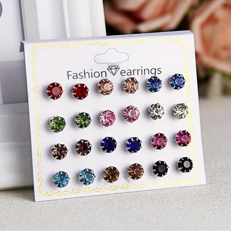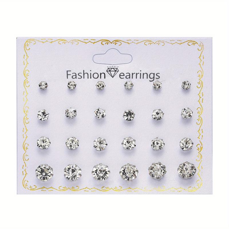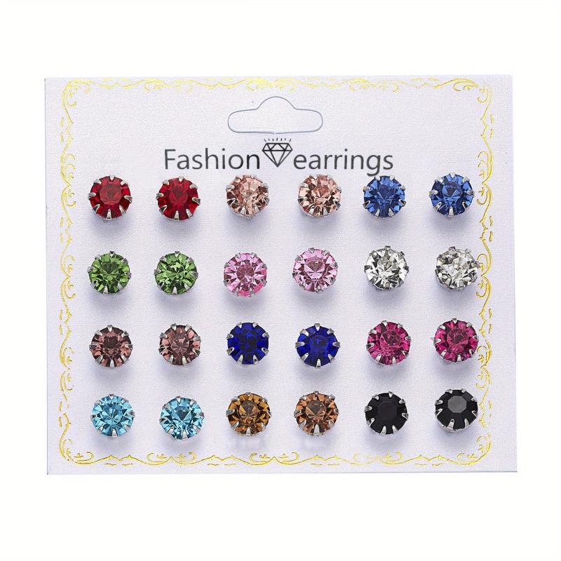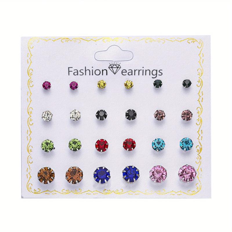 This set includes 12 pairs of colorful rhinestone stud earrings, perfect for adding a touch of sparkle to any outfit. Minimalist style design and made from high-quality alloy material.