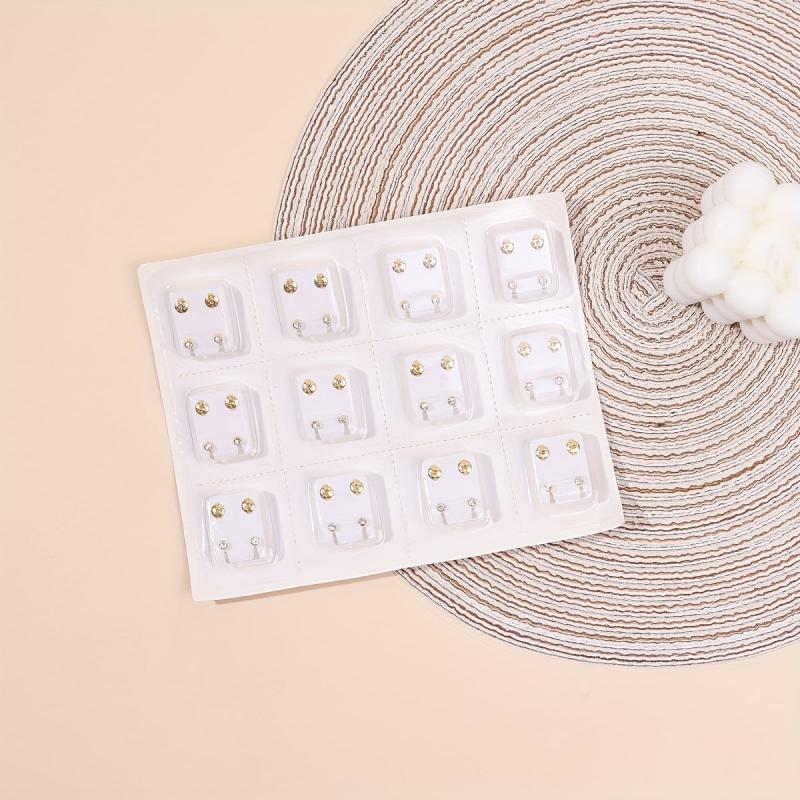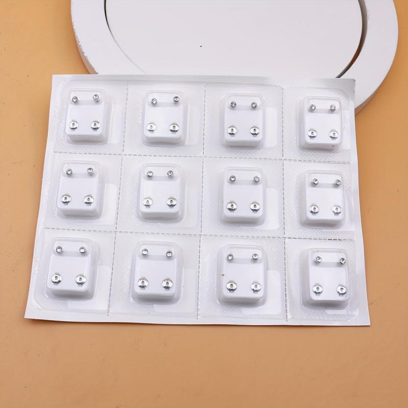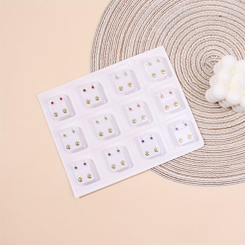 This set includes 12 pairs of tiny stud earrings made of iron and embellished with rhinestones. Perfect for daily wear or as a gift for women.