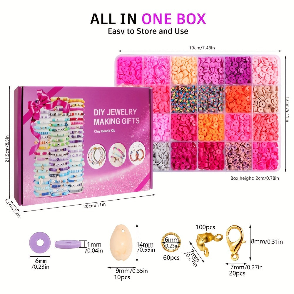 Create beautiful jewelry with this DIY bracelet charm making kit featuring 12000 flat circular polymer clay stone spacing beads in 120 colors. Perfect for DIY handicrafts, necklaces, and gifts.