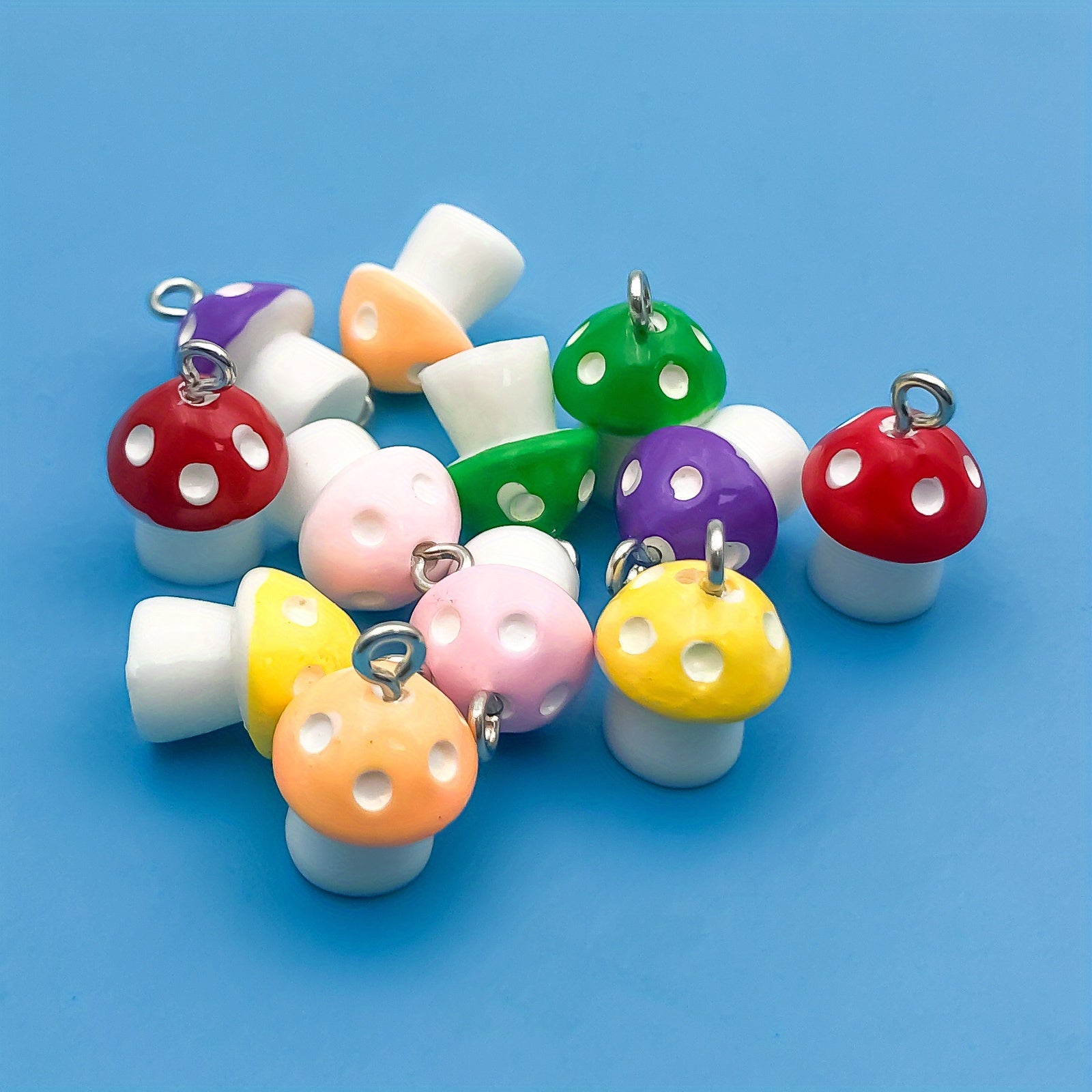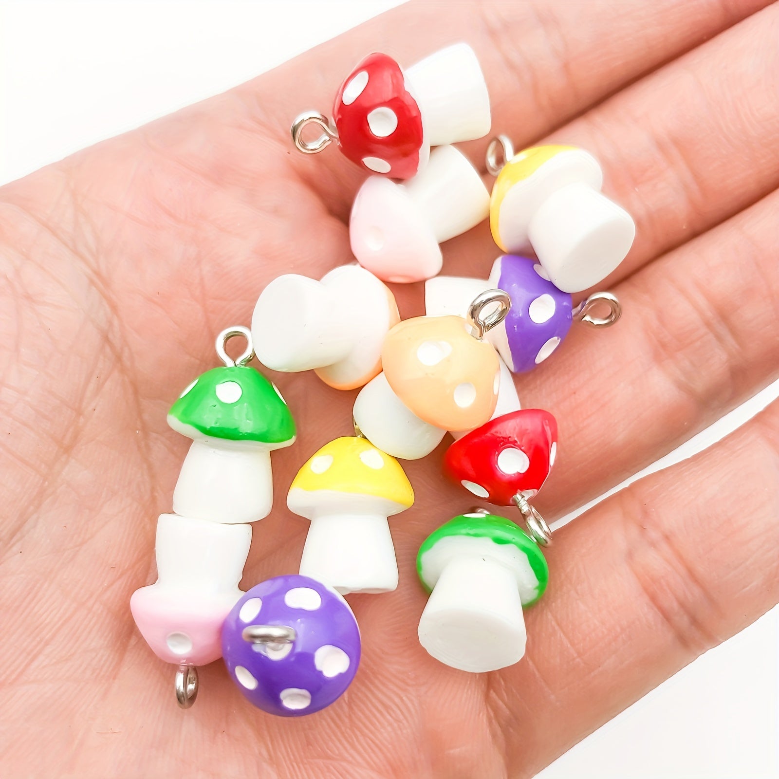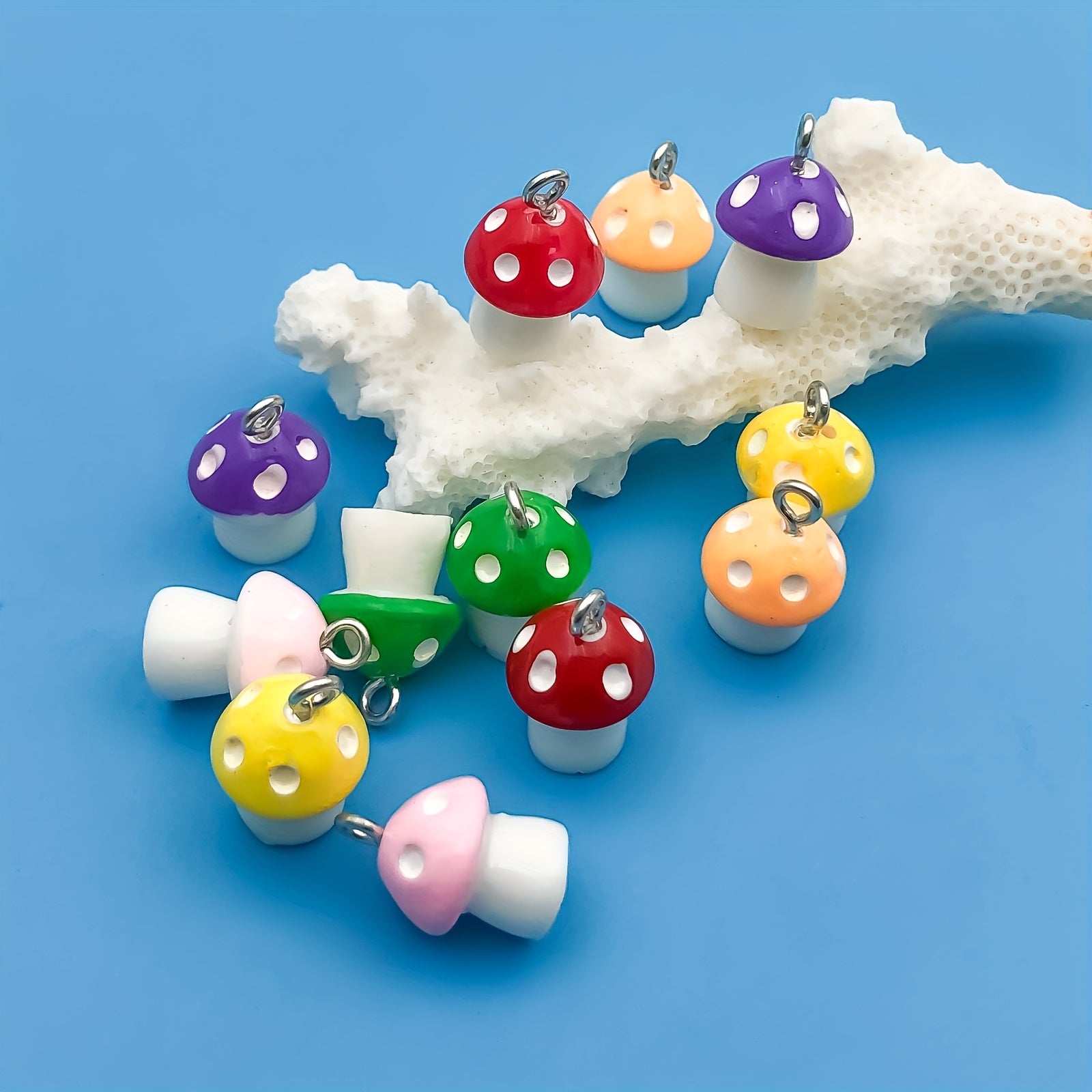 Create unique jewelry with this set of 12 resin mushroom-shaped pendants. Perfect for necklaces, bracelets, and earrings.