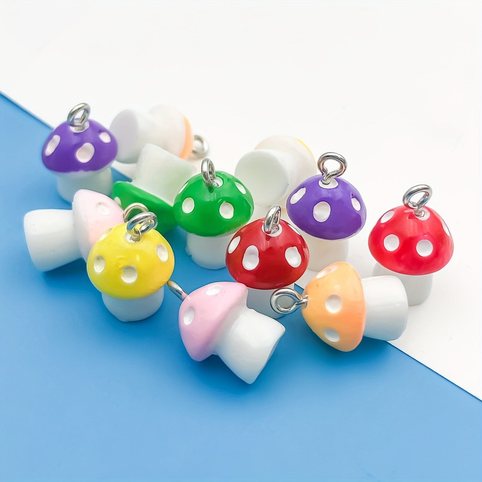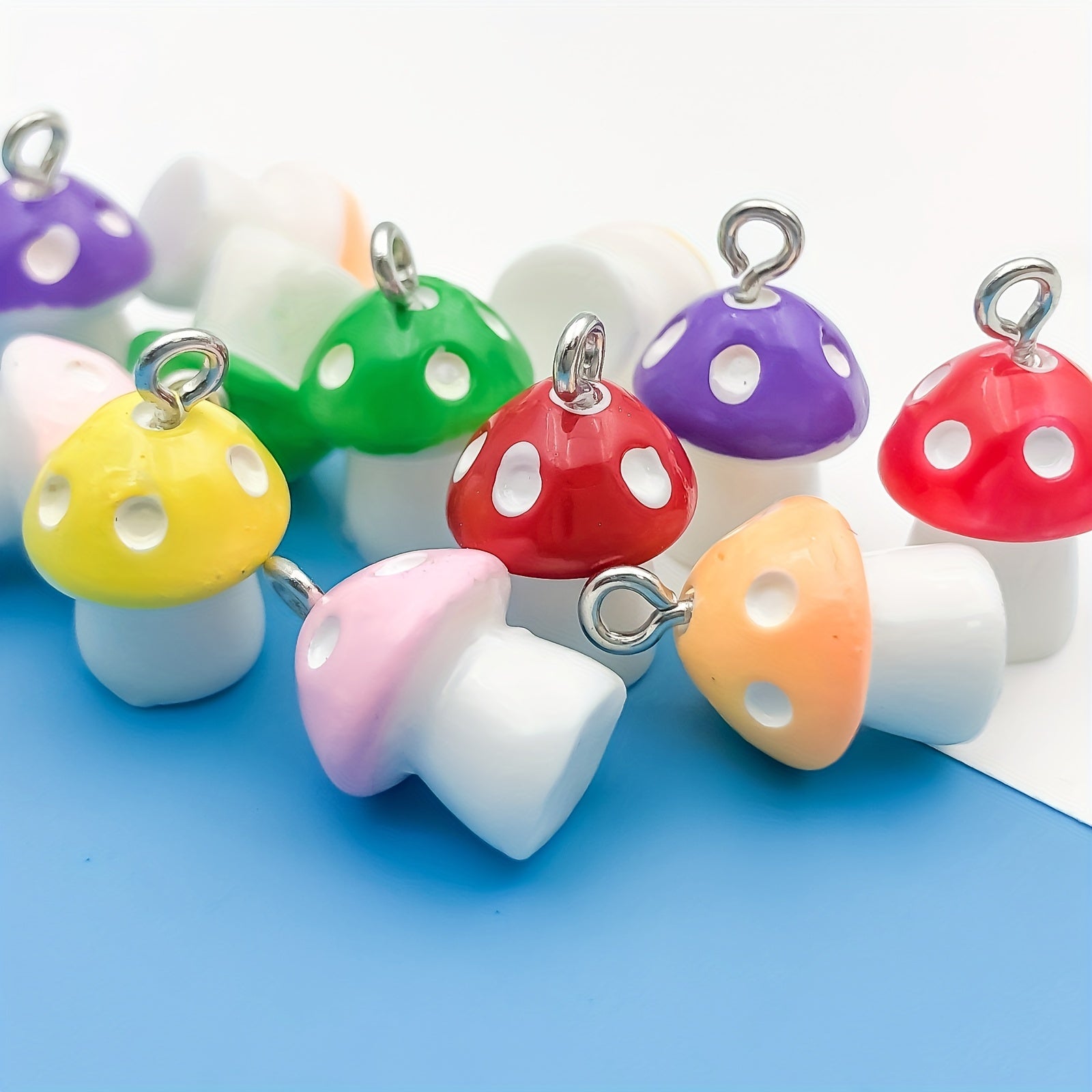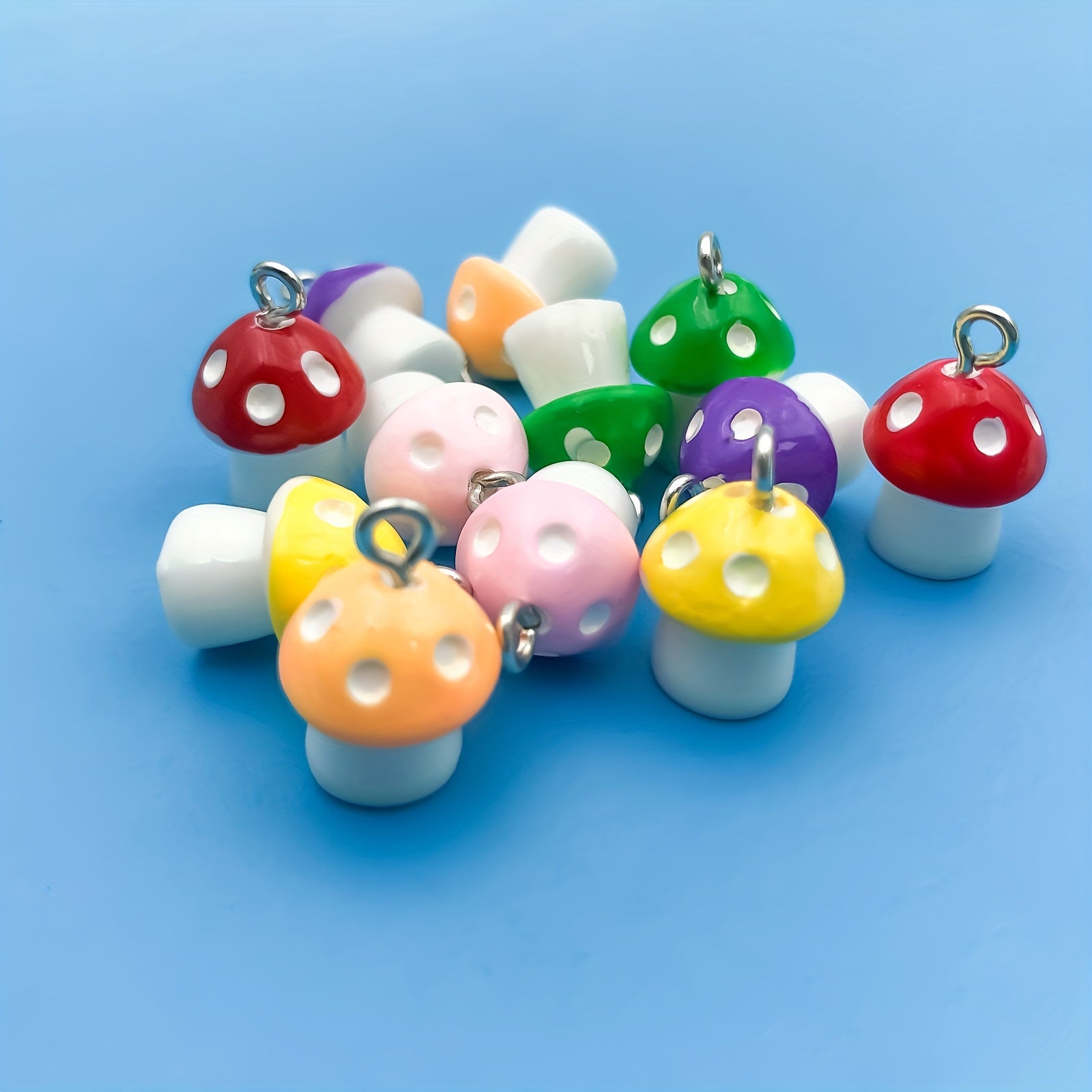 Create unique jewelry with this set of 12 resin mushroom-shaped pendants. Perfect for necklaces, bracelets, and earrings.