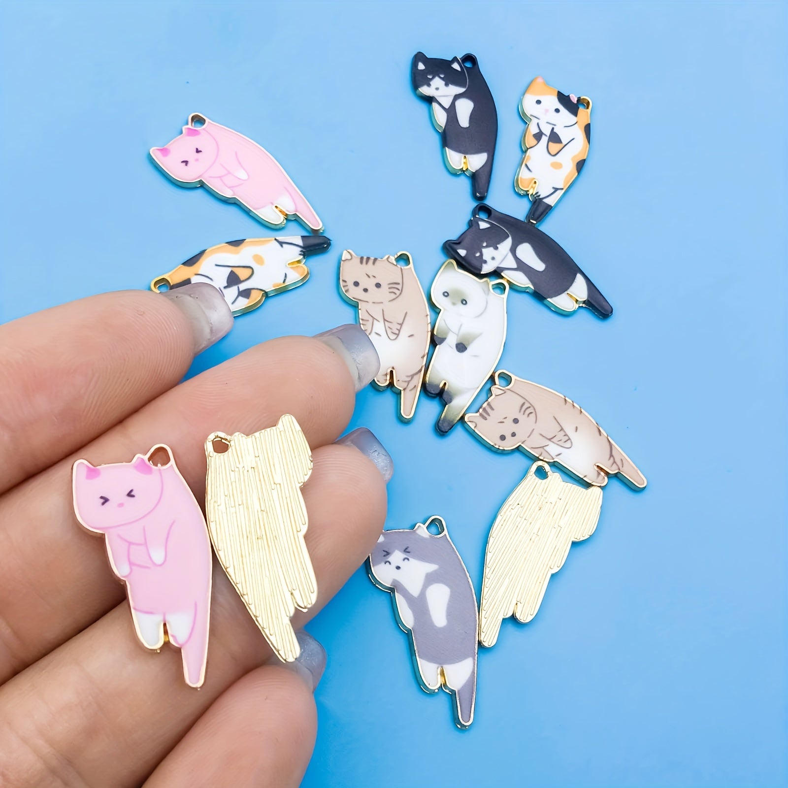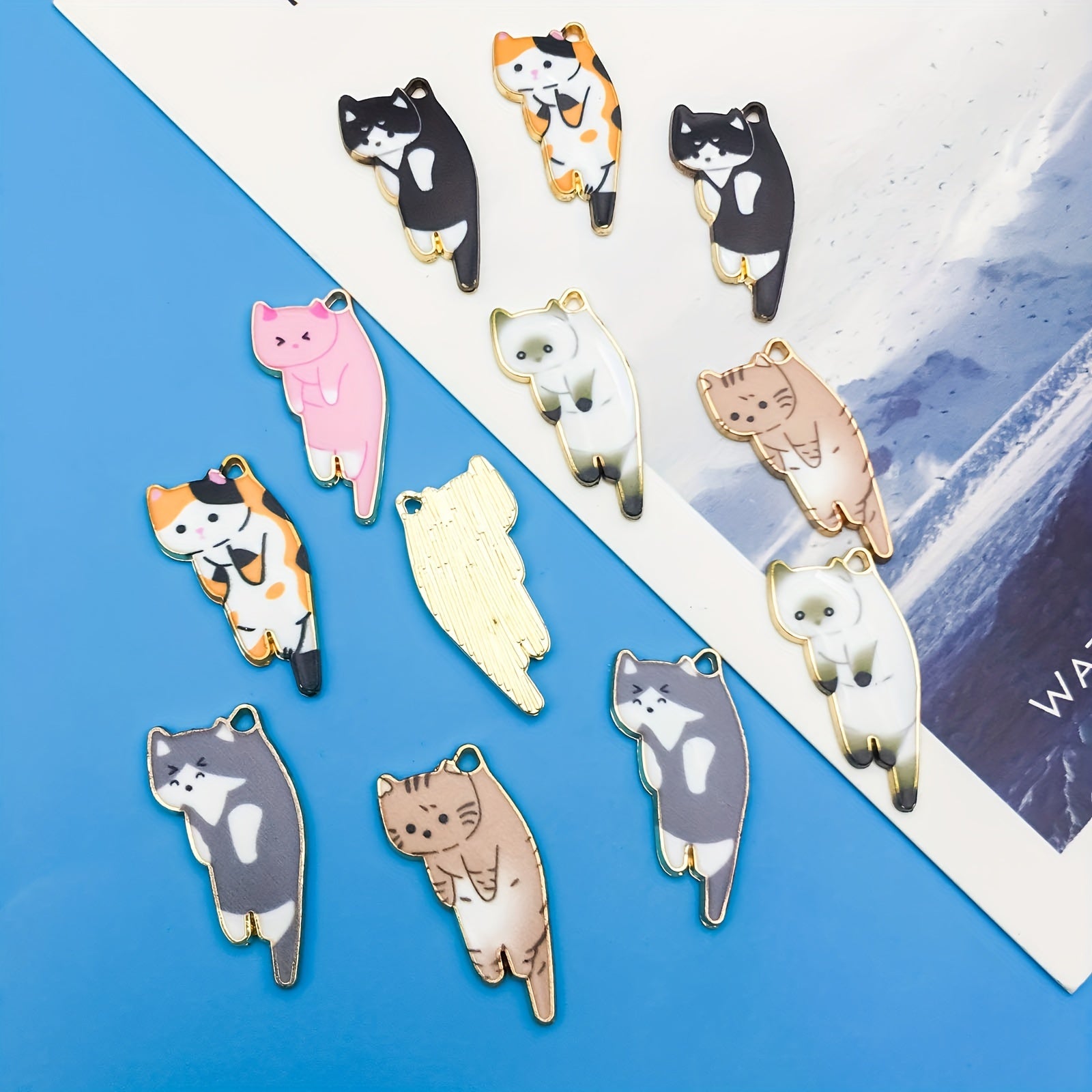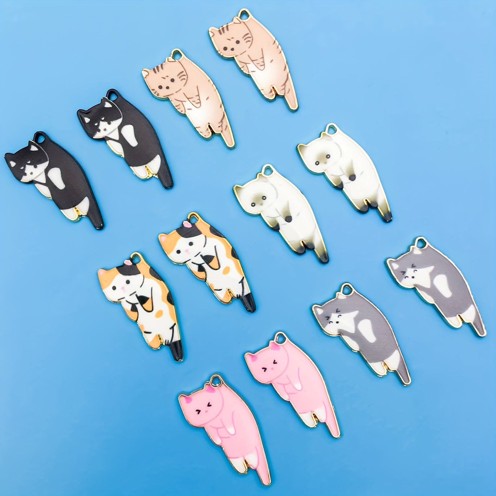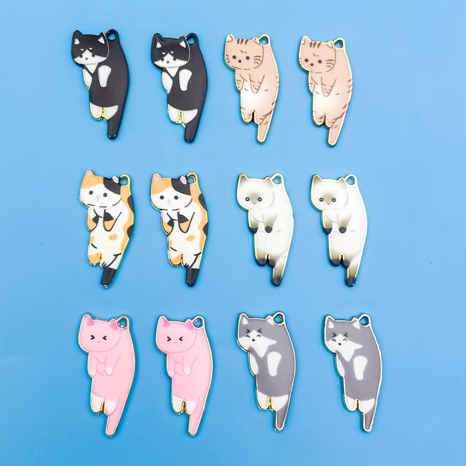 This set includes 12 randomly mixed alloy enamel charms with cat patterns, perfect for DIY jewelry making. Each charm measures 2.5cm x 1.0cm x 0.43inch.
