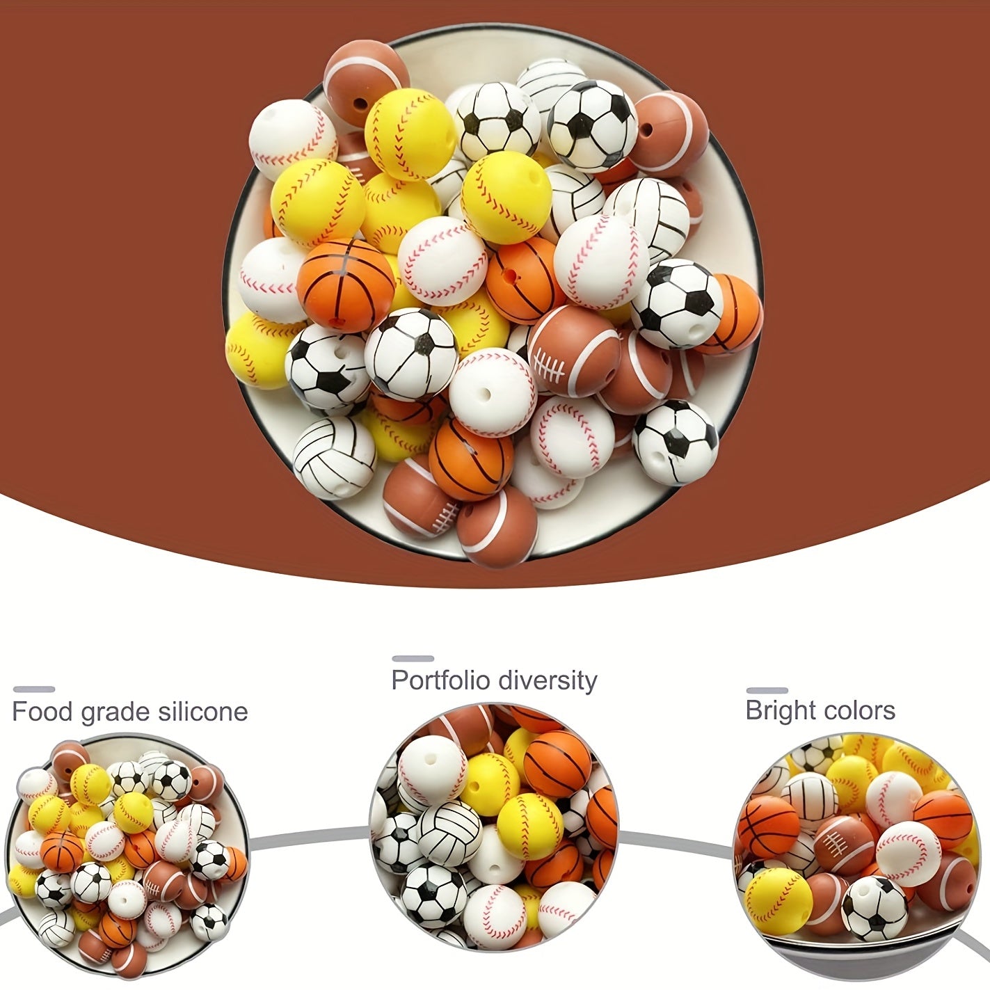 This pack includes 12 sports silicone beads in baseball, softball, and football designs. Perfect for keychain, bracelet, necklace, and other crafts.
