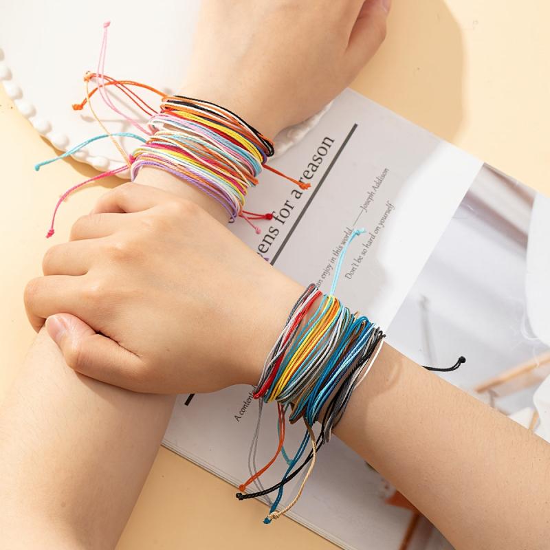Mix and match these boho style wax cord bracelets with vibrant colors. Perfect for everyday wear or beach vacations. Features adjustable design for comfort and style.