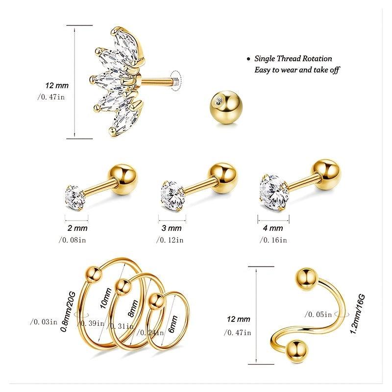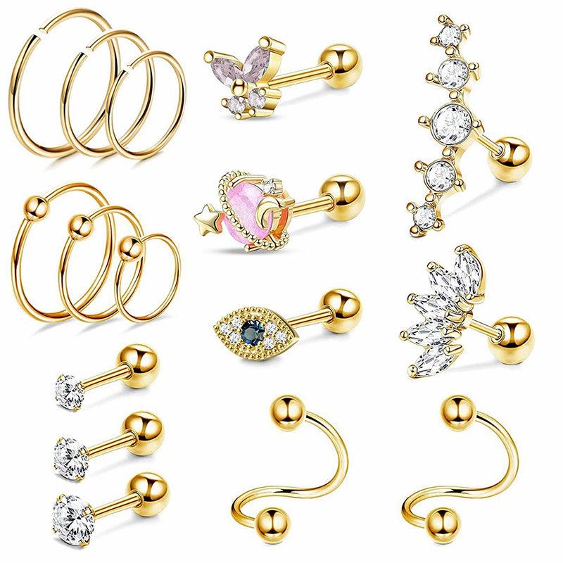 Enhance your daily style with this set of 16 cartilage earrings. Made of hypoallergenic material, these earrings are perfect for women and girls.