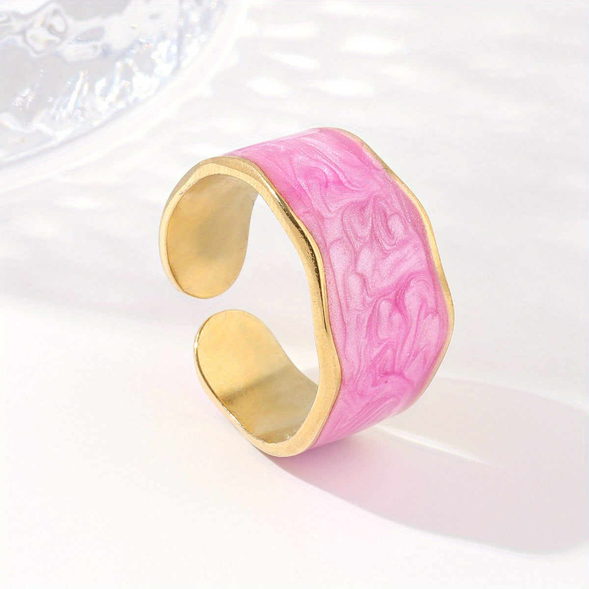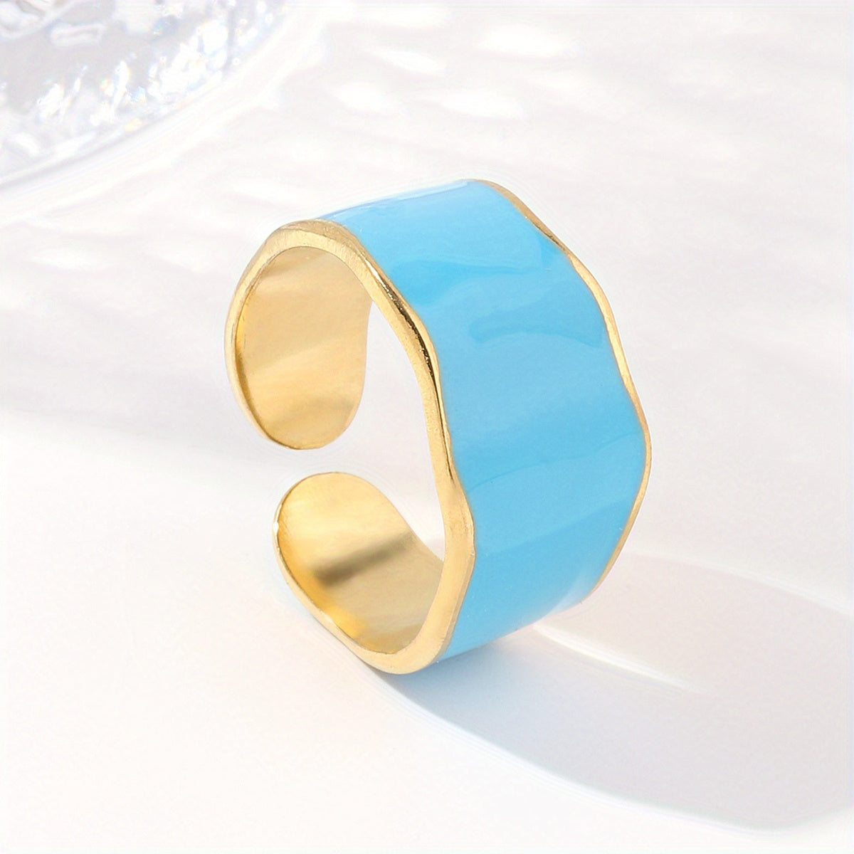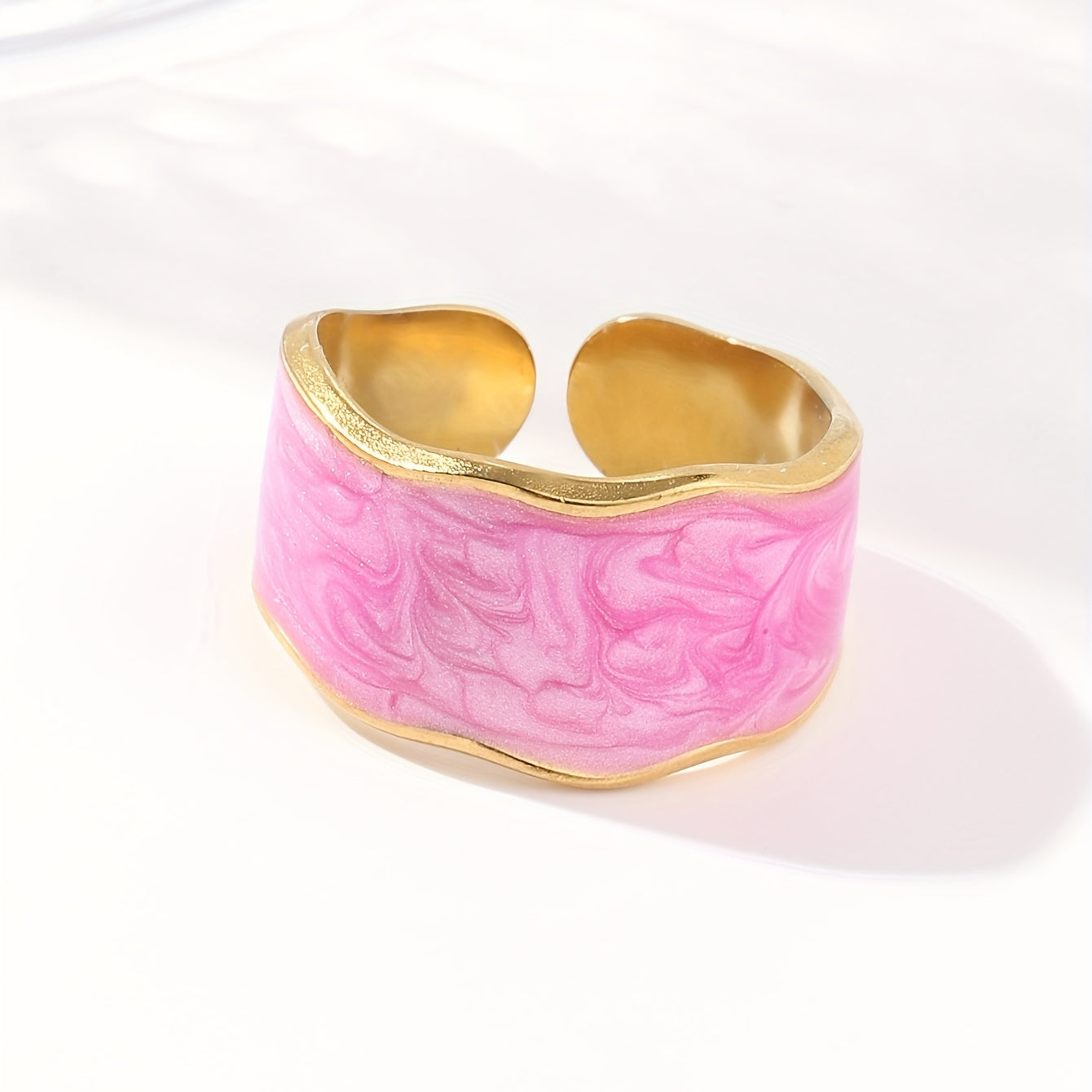 Elegant and trendy open ring with wavy design featuring dark purple enamel. Made of high polished 18K plated stainless steel, this waterproof jewelry piece is perfect for any occasion.