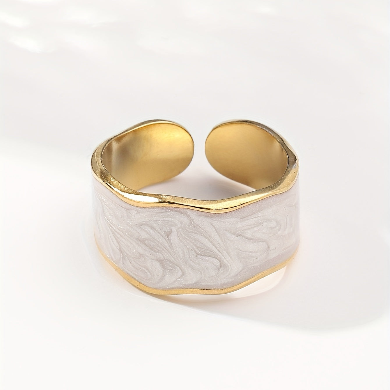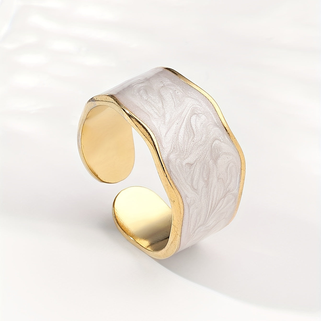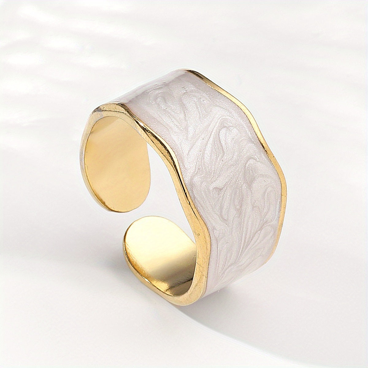 Elegant and trendy open ring with wavy design featuring dark purple enamel. Made of high polished 18K plated stainless steel, this waterproof jewelry piece is perfect for any occasion.