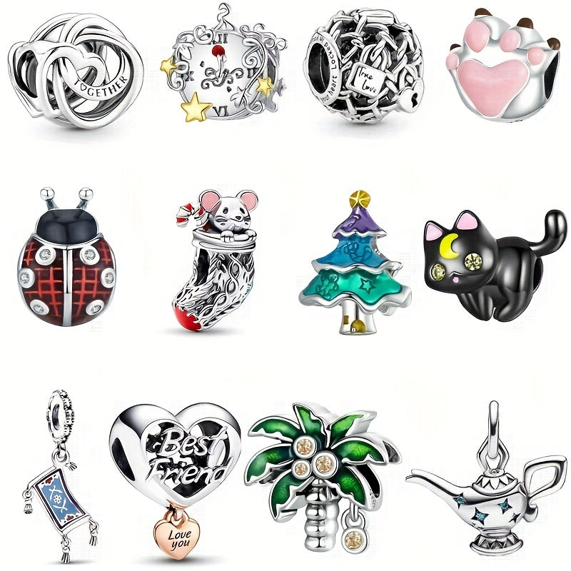 Add a cute touch to your bracelet with this cartoon animal bead charm featuring a dog paw, ladybug, kitten, or mouse design. Ideal for DIY jewelry projects.