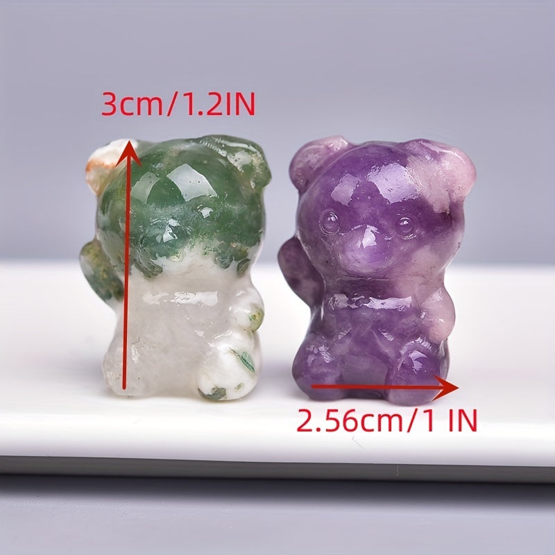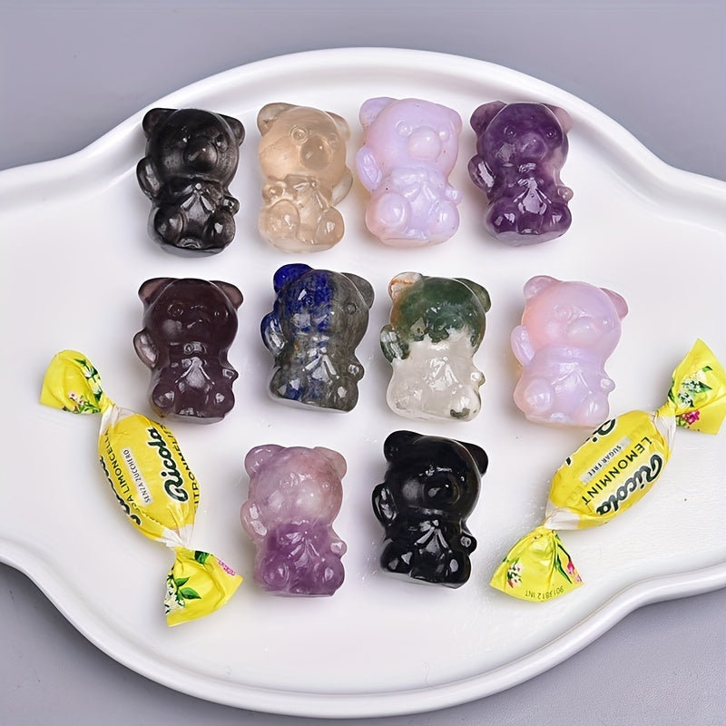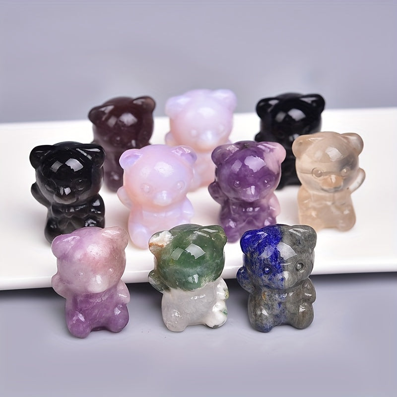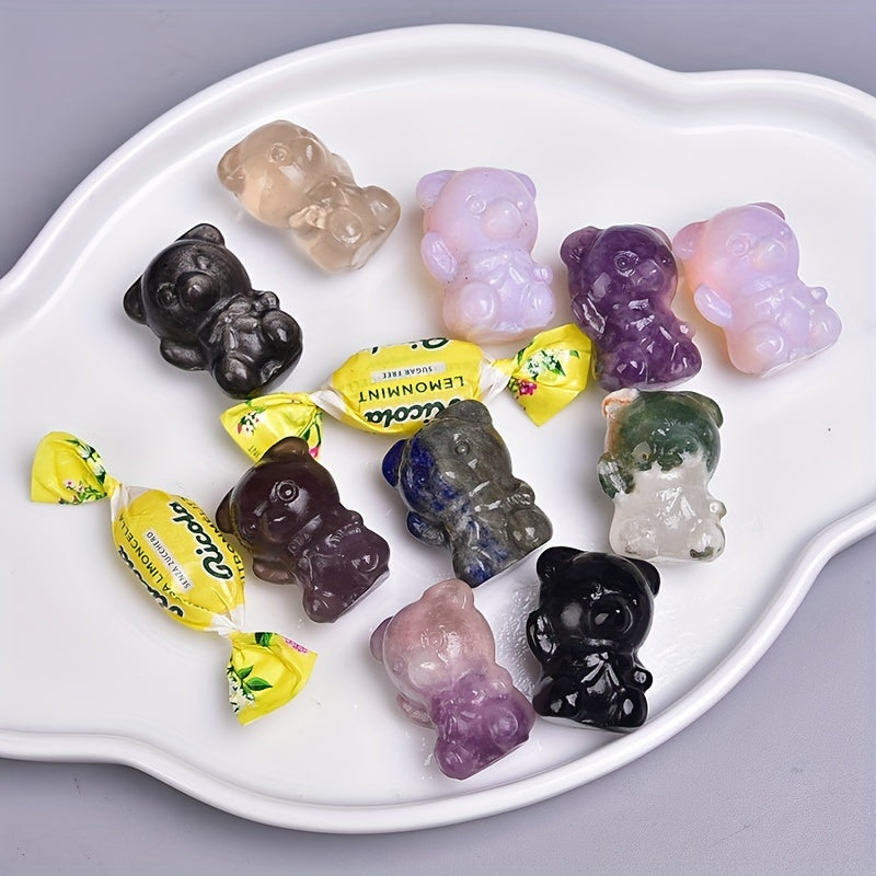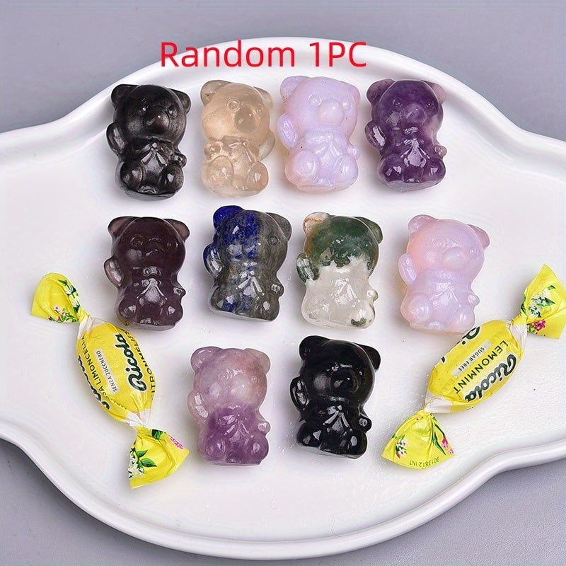 This 1pc Bear Crystal is a natural carved cartoon character healing stone that adds a touch of whimsy to your decor. Perfect for animal lovers and crystal enthusiasts.