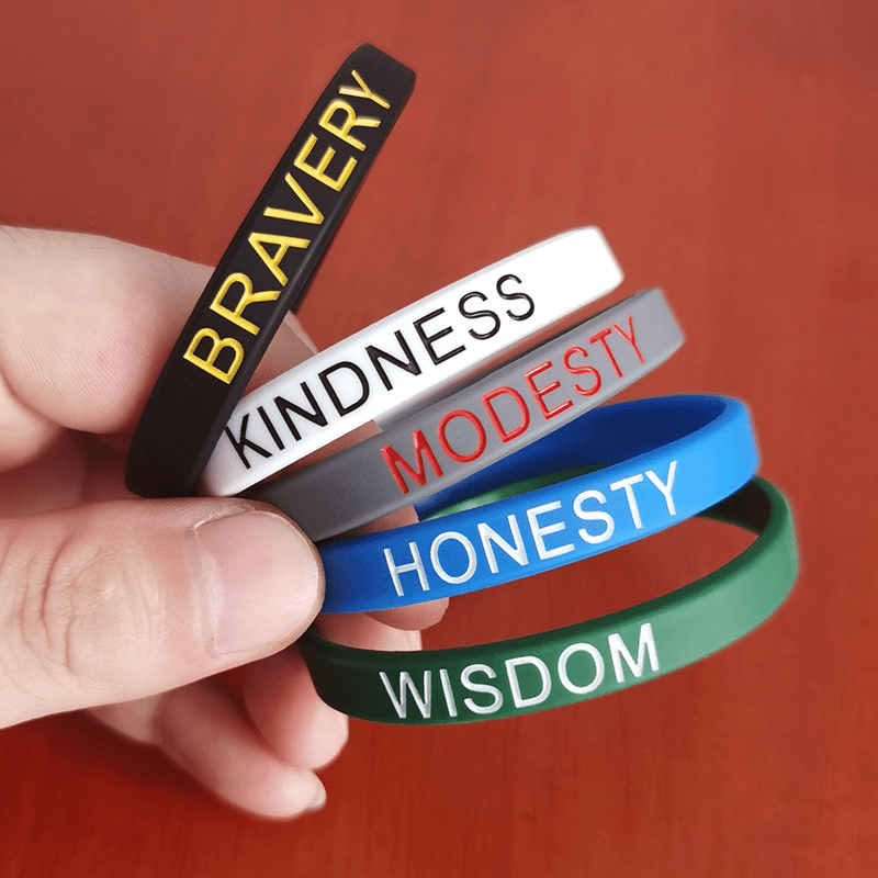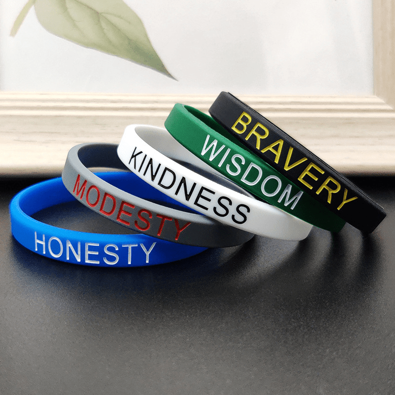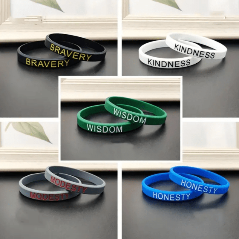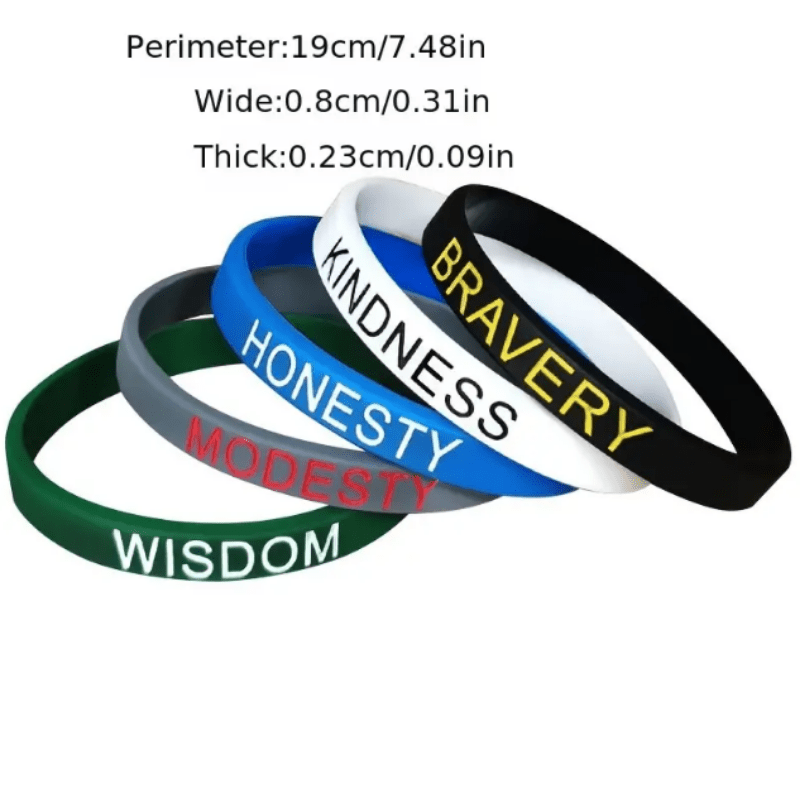 These silicone wristbands feature positive words and text messages. They are made of solid rubber and are perfect for parties and events. Each band is durable and comfortable to wear.