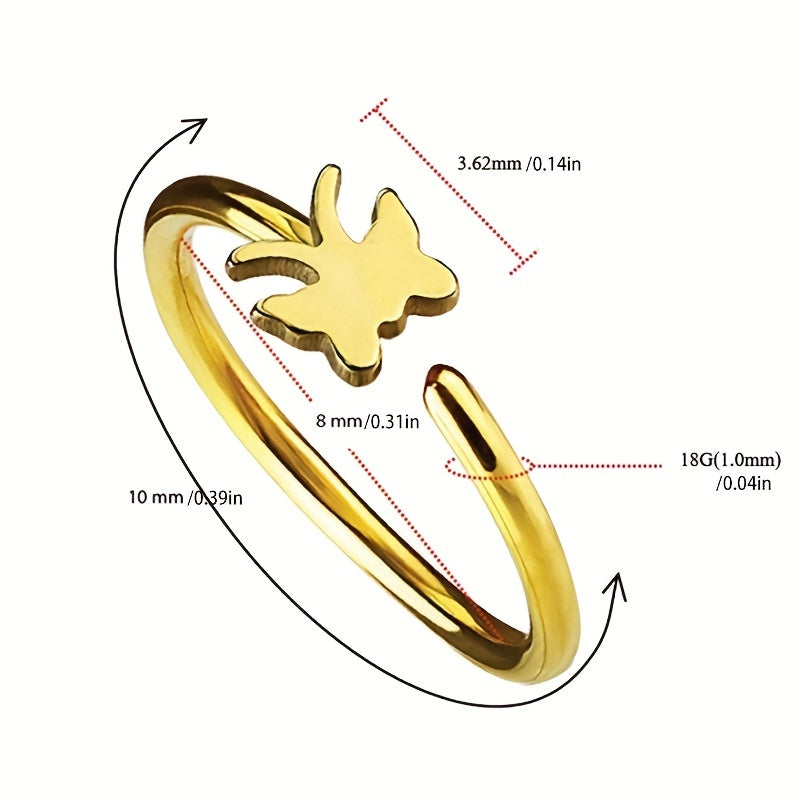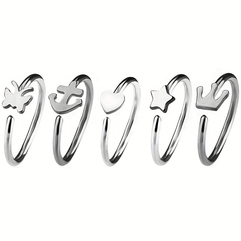Upgrade your nose jewelry collection with this stylish stainless steel nose ring featuring a variety of shape patterns. Perfect for adding a touch of glam to your look!