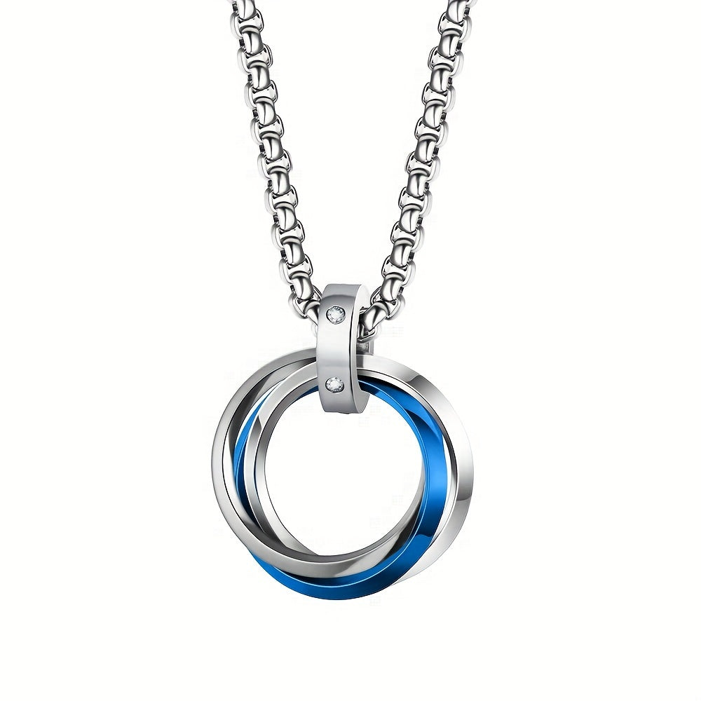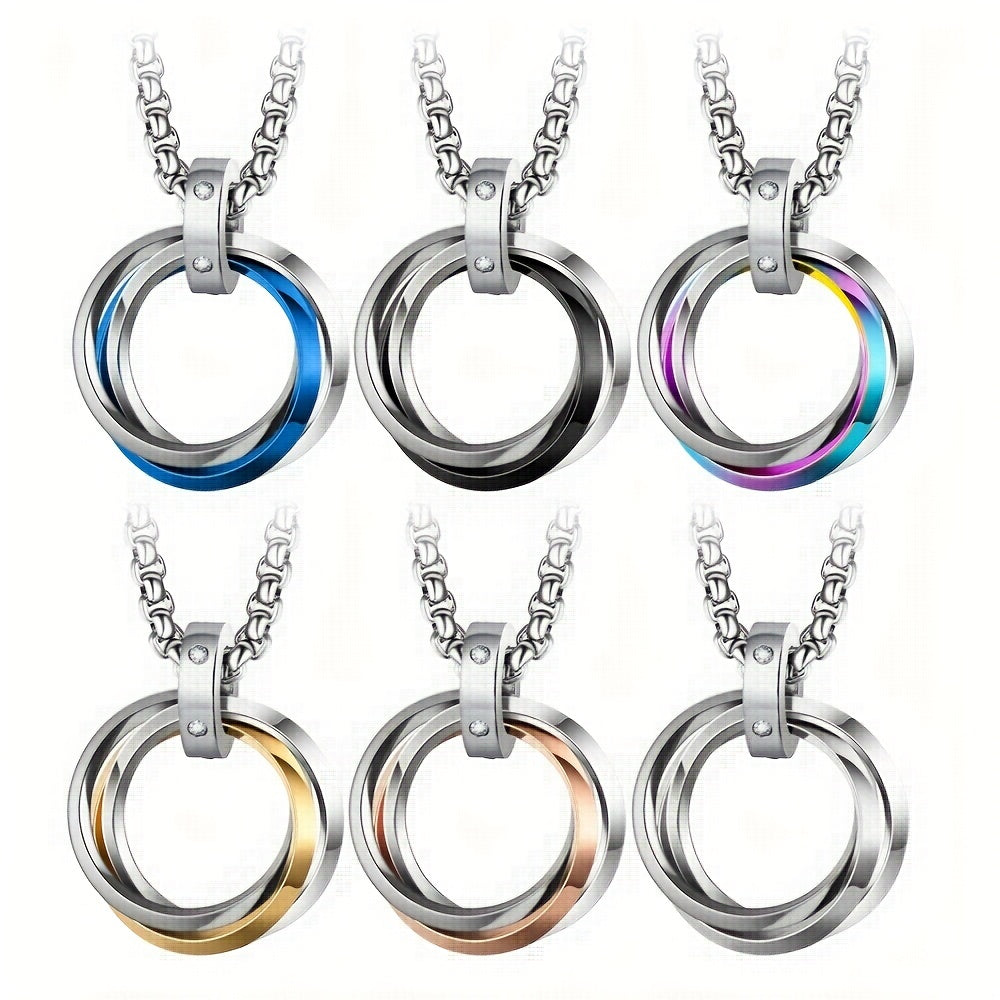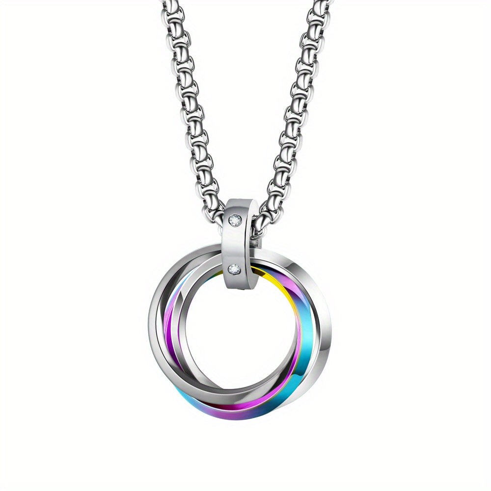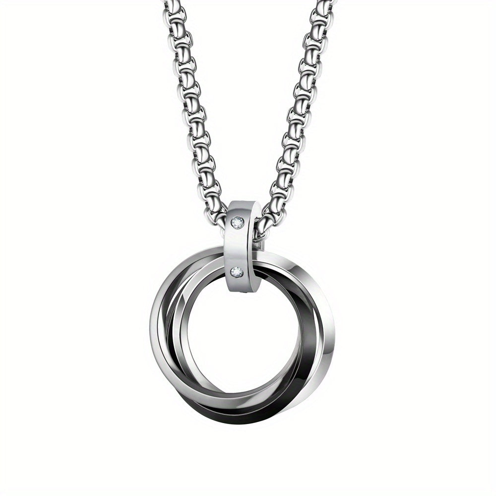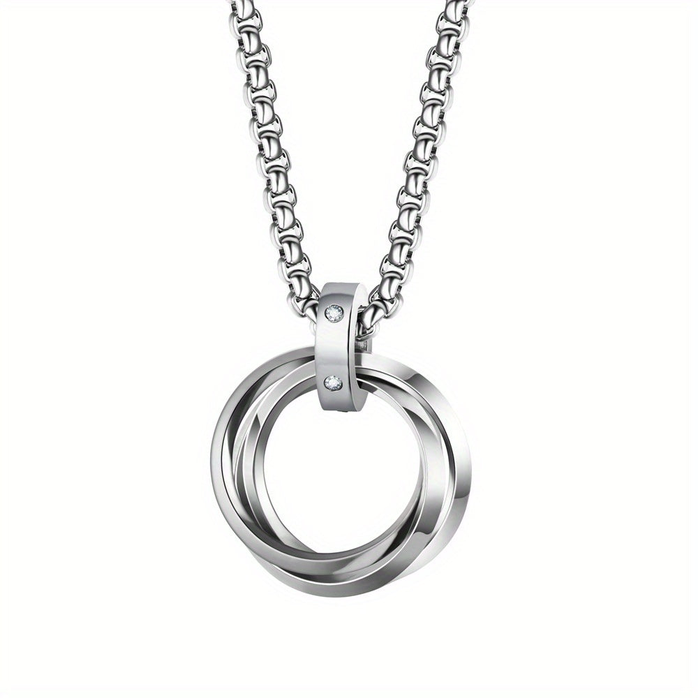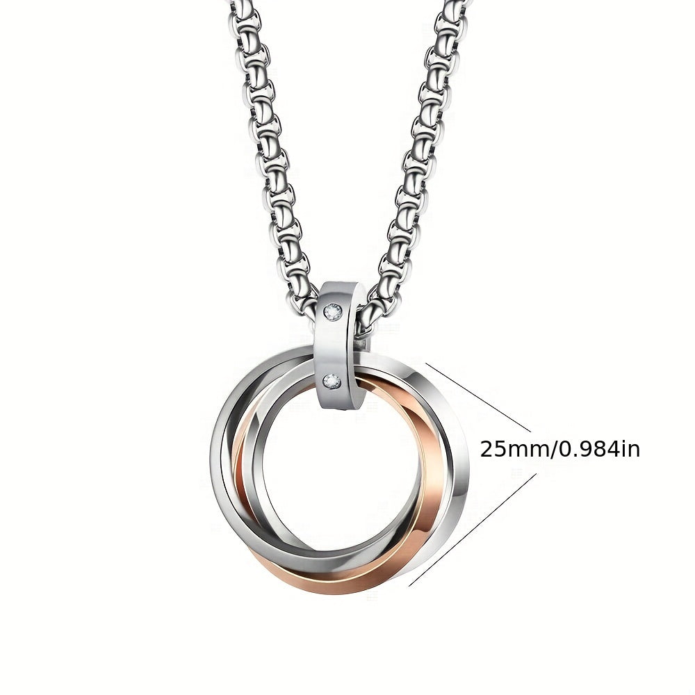 This stylish necklace features a creative design with three rings and a sparkling diamond pendant. Perfect for anniversaries, birthdays, or parties.