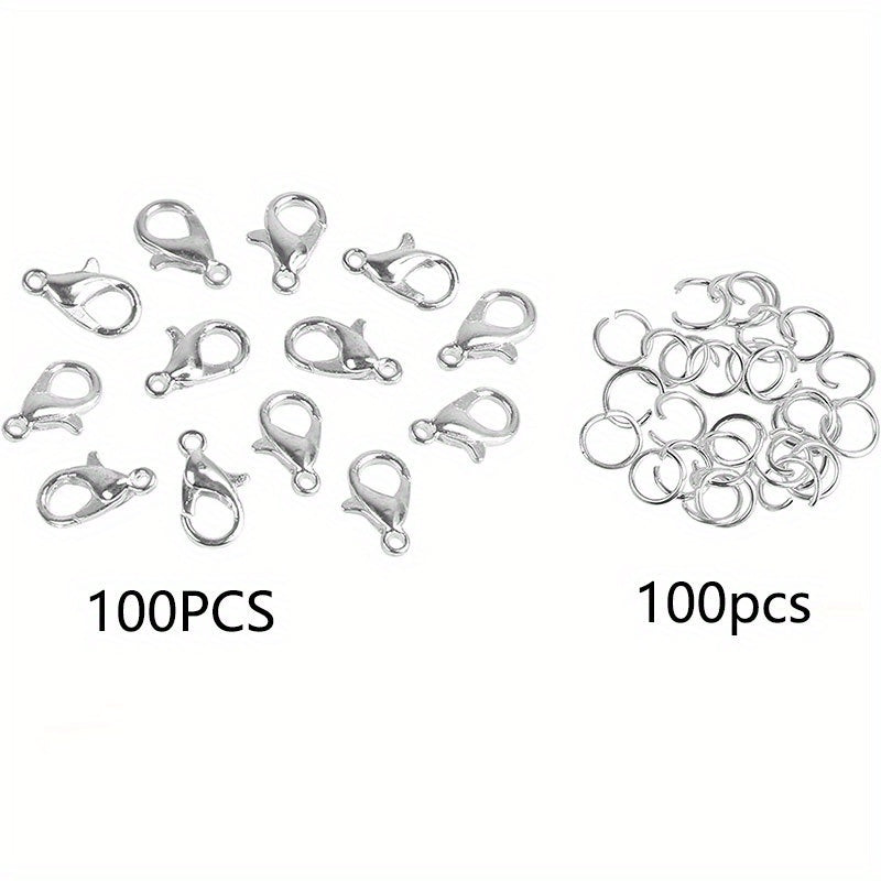 This kit includes 200 lobster claw clasps with open jump rings for making DIY necklaces, bracelets and other jewelry items. Ideal for crafters and jewelry enthusiasts.