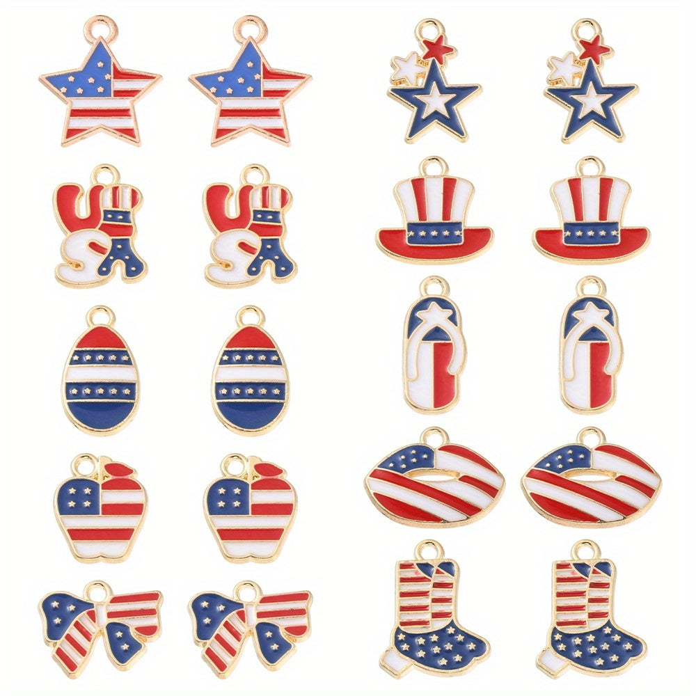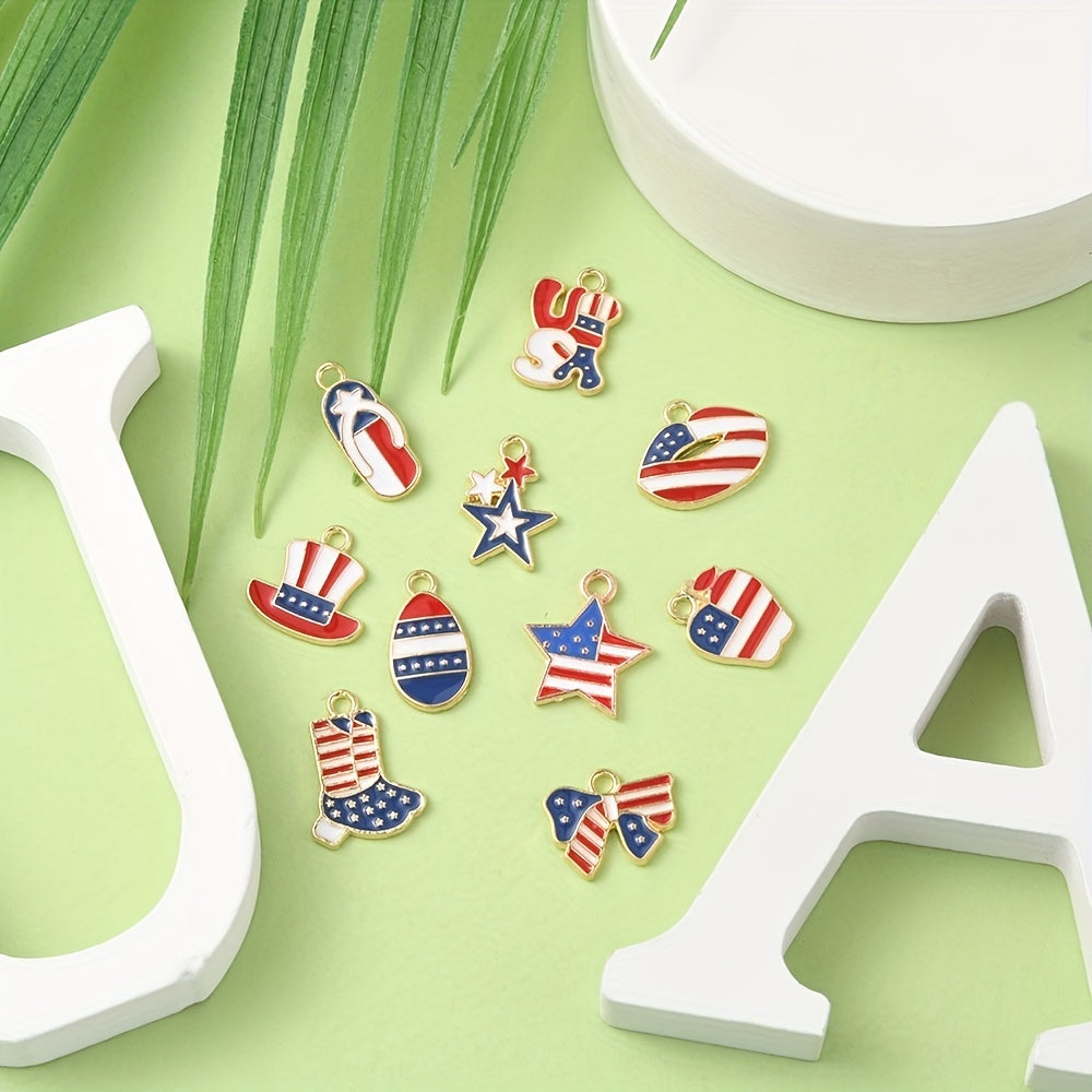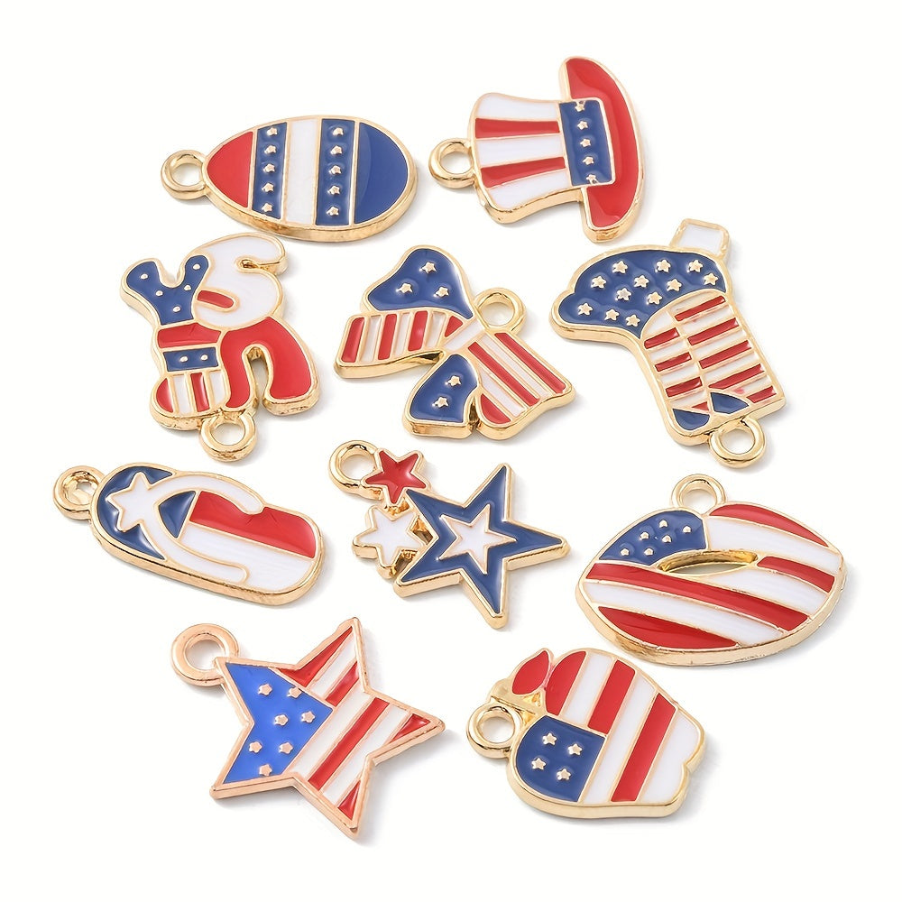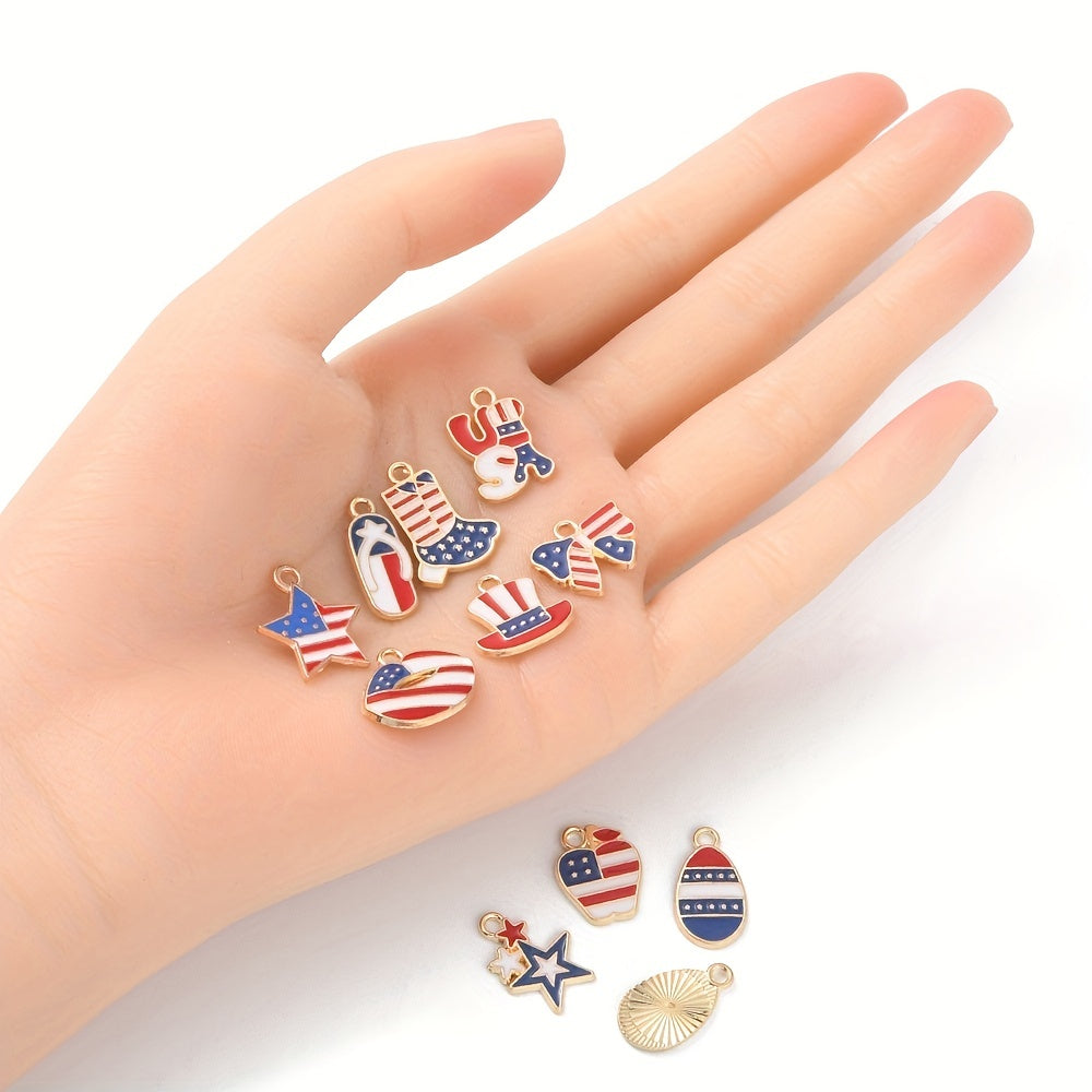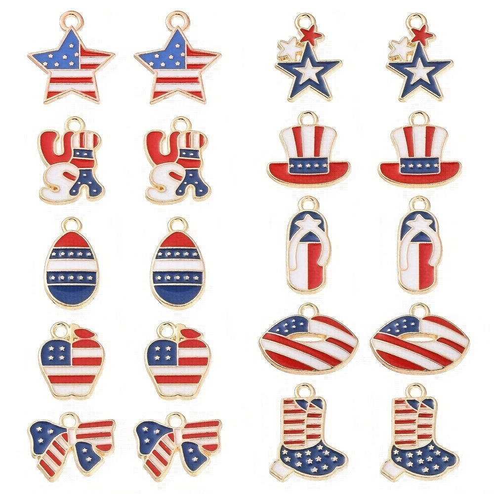 Enhance your DIY projects with these American flag pattern shaped alloy pendants. Perfect for earrings, bracelets, necklaces, and other accessories.