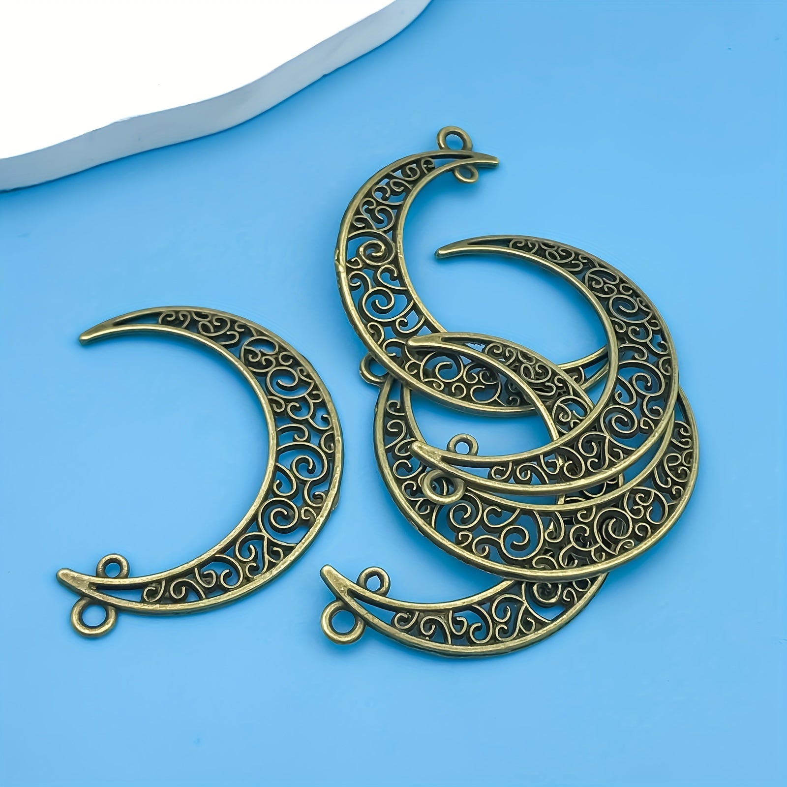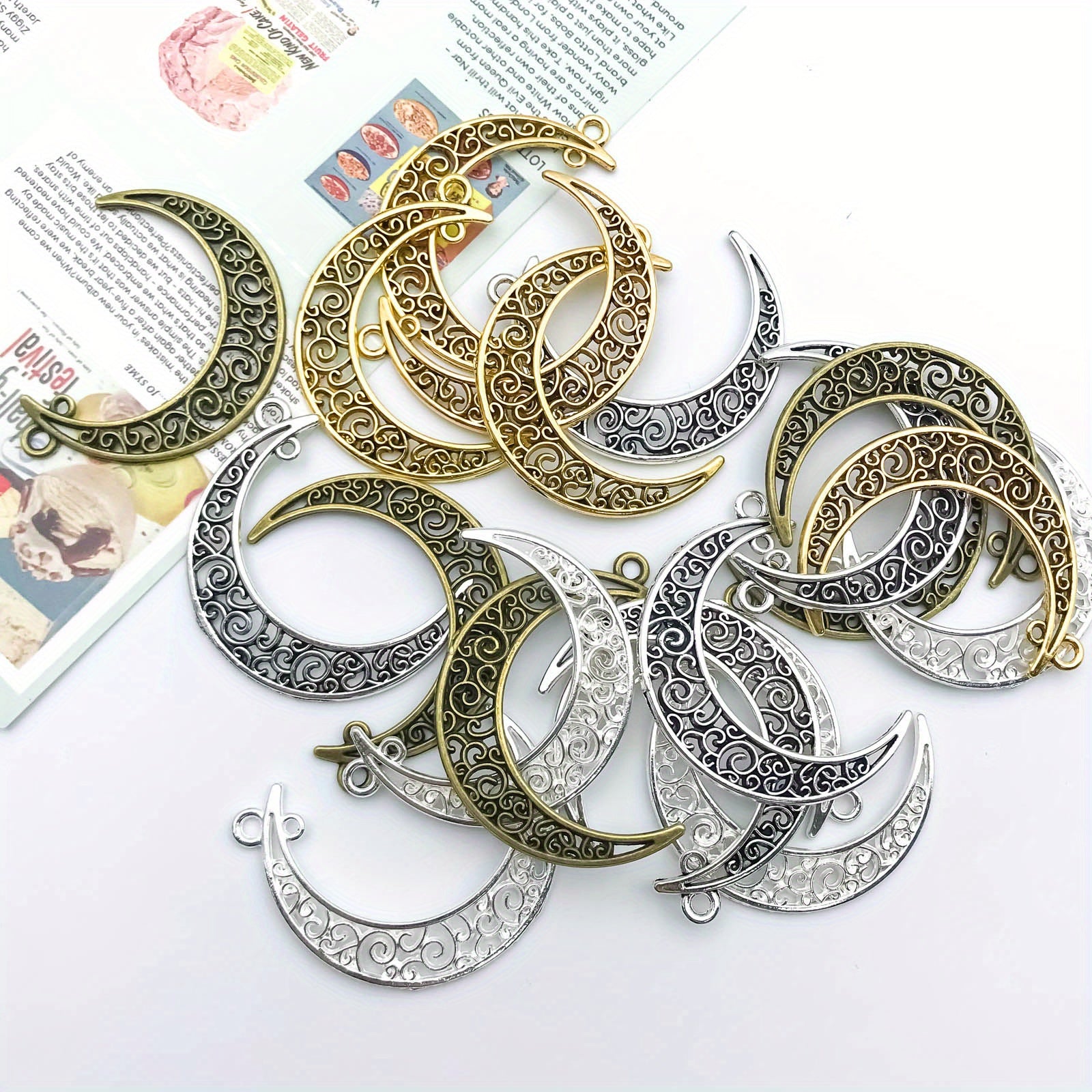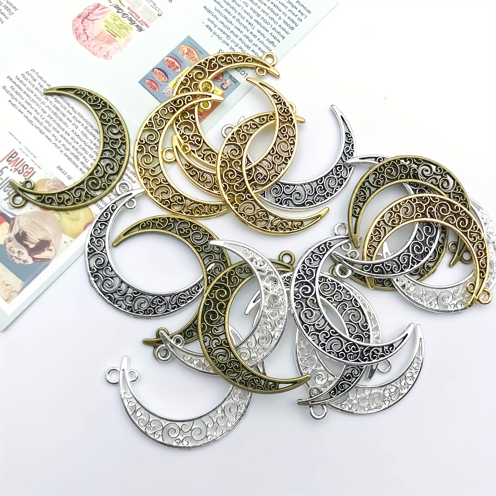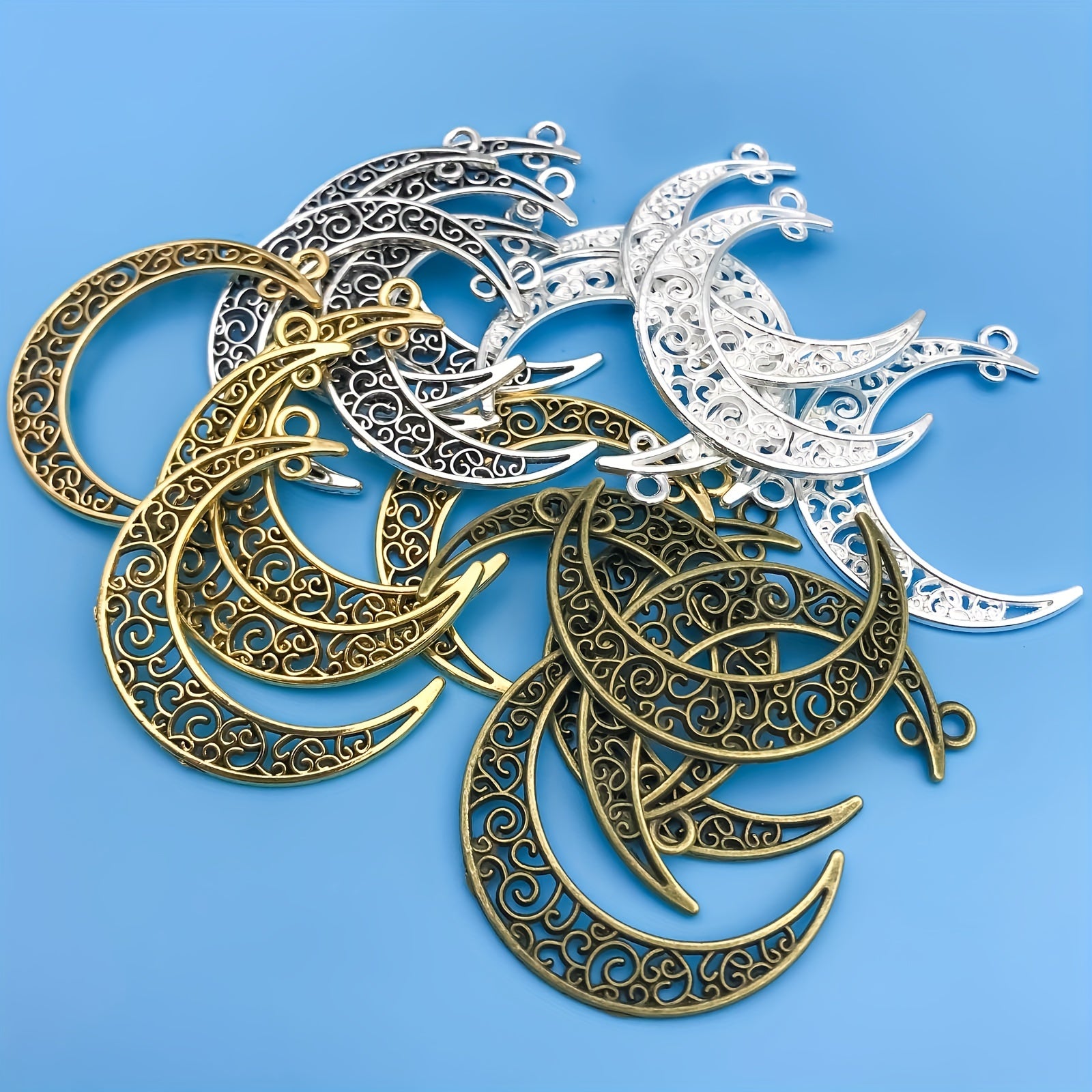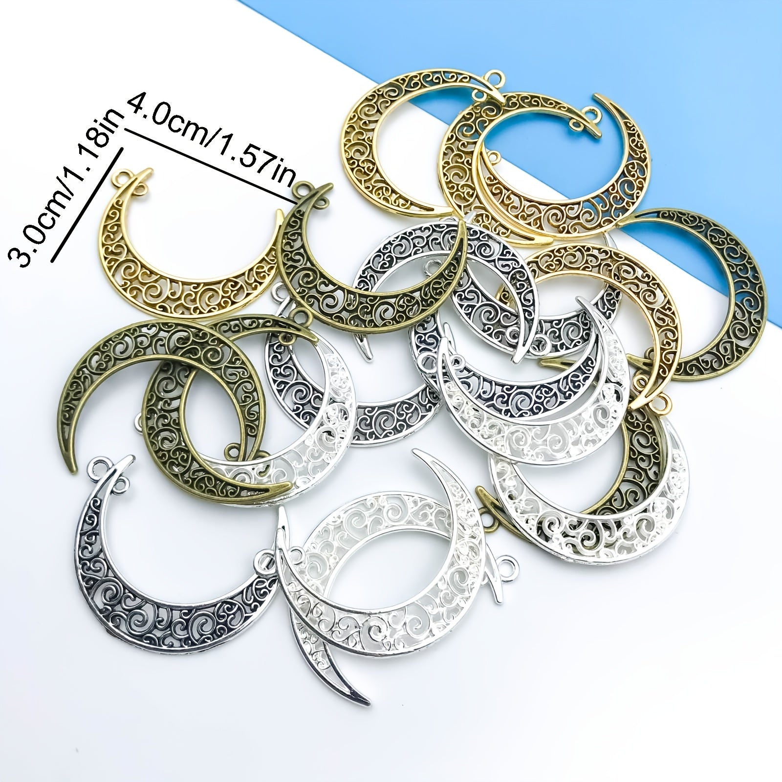 Elevate your jewelry-making projects with this set of 20 mixed zinc alloy crescent shape pendants. Perfect for necklaces, bracelets, and other accessories.