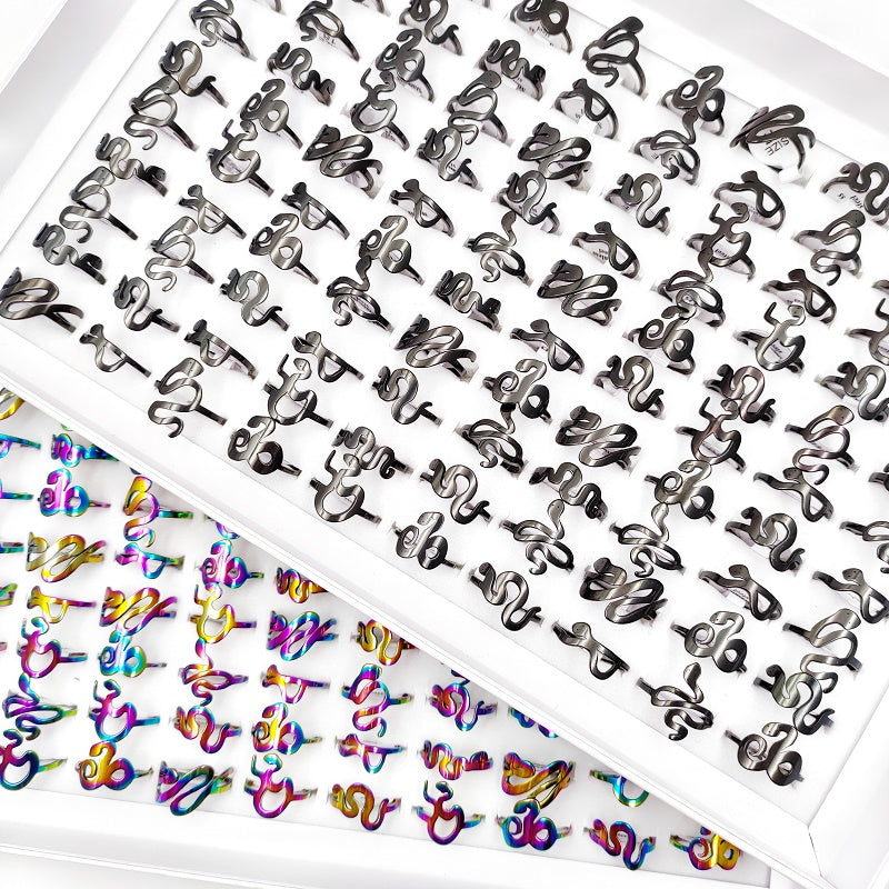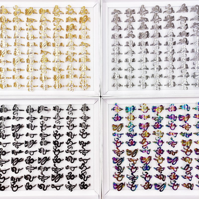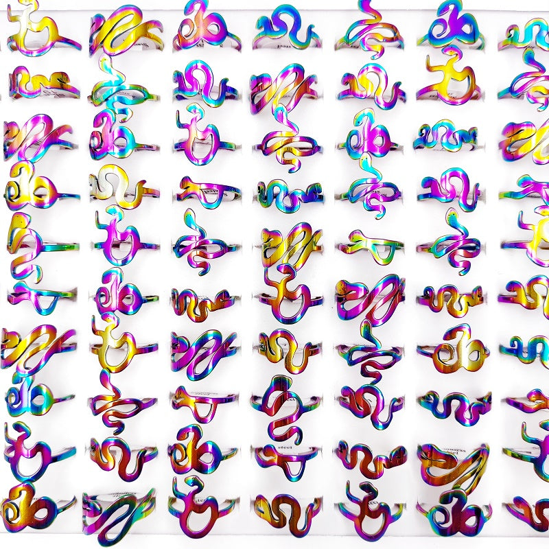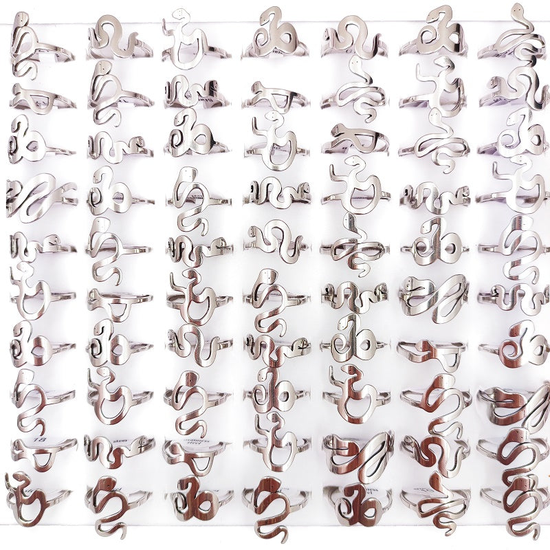 Enhance your style with this set of 20 stainless steel snake animal rings suitable for parties and as gifts.