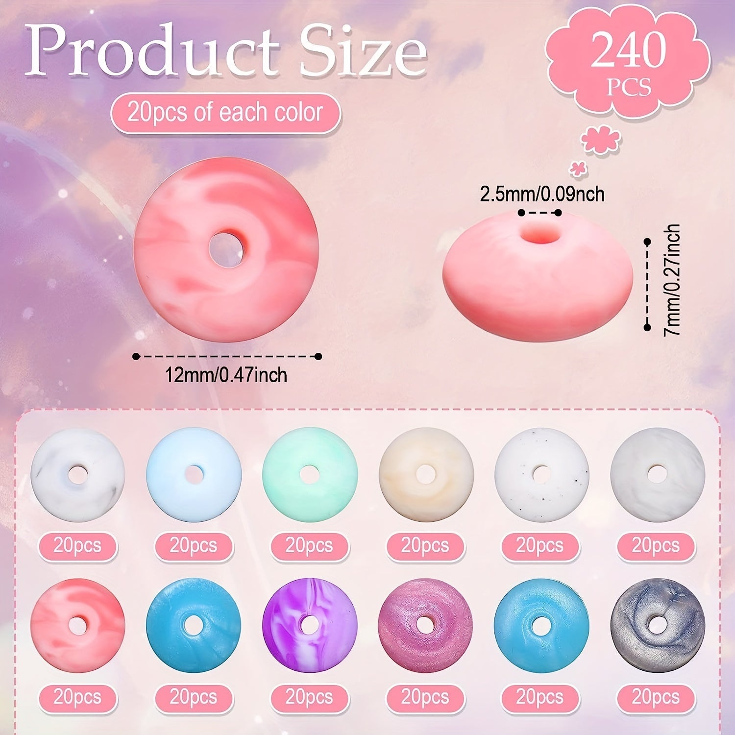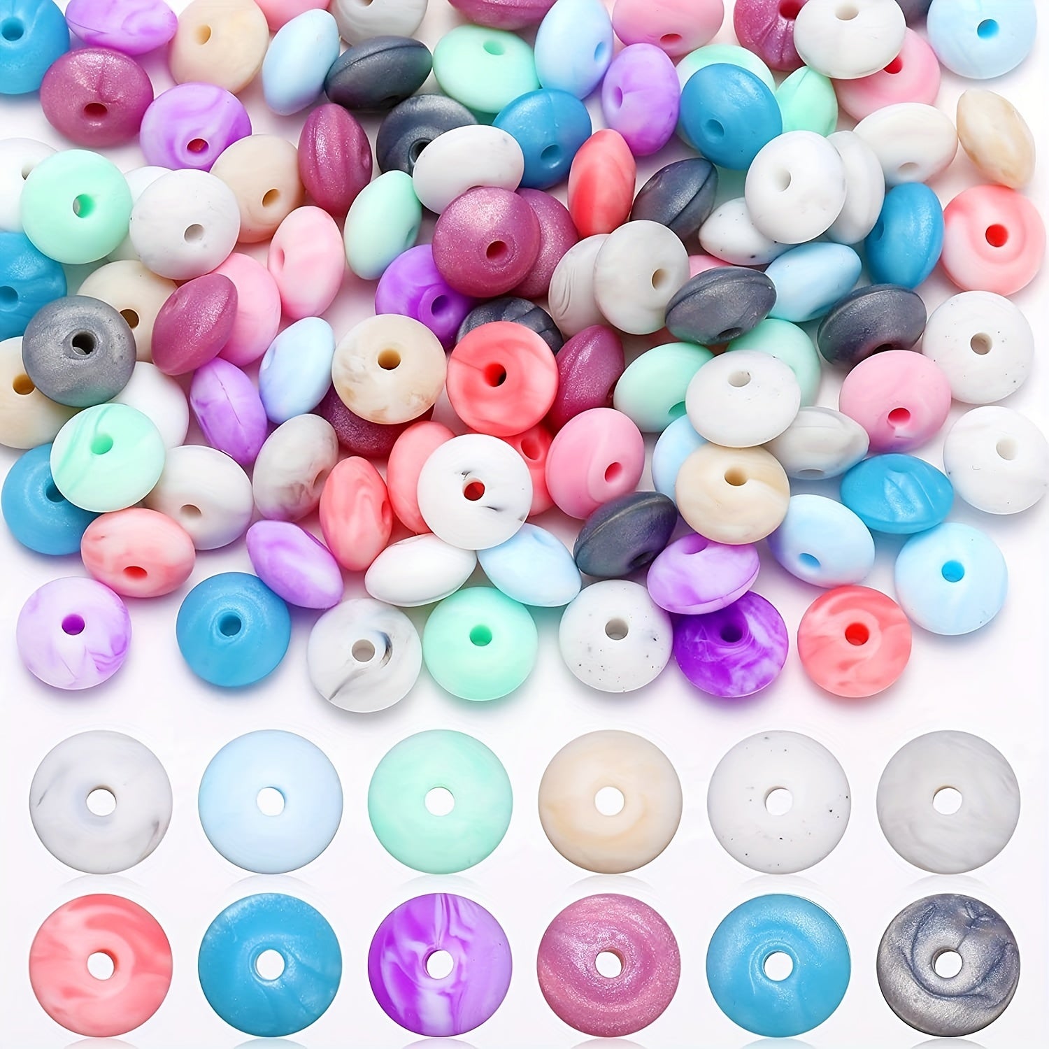 Add a pop of color to your DIY projects with these 12mm colorful silicone abacus beads. Ideal for making pacifier chains, hanging rope decorations, or accessorizing loose silicone beads in 12 vibrant colors.