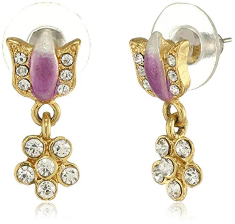 Add a touch of elegance to your outfit with these stunning flower drop earrings. Crafted with 24Kt gold plating and sparkling Austrian crystals, these earrings are perfect for any occasion.