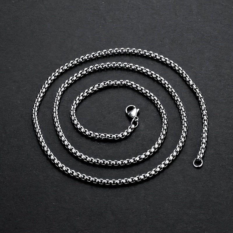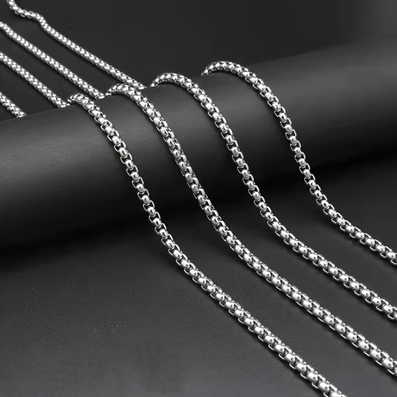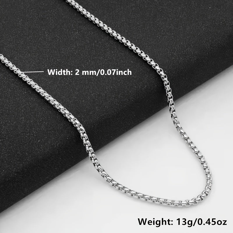 Enhance your jewelry designs with this 2mm wide stainless steel corn chain featuring a square pearl chain interlock. Perfect for creating unique and eye-catching pieces.