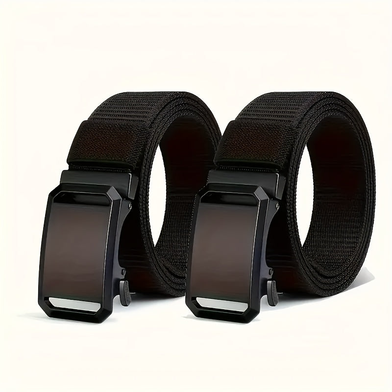 This set includes 2 automatic buckle nylon belts perfect for casual or workwear pants. Made of solid polyester fiber with an iron buckle for durability.