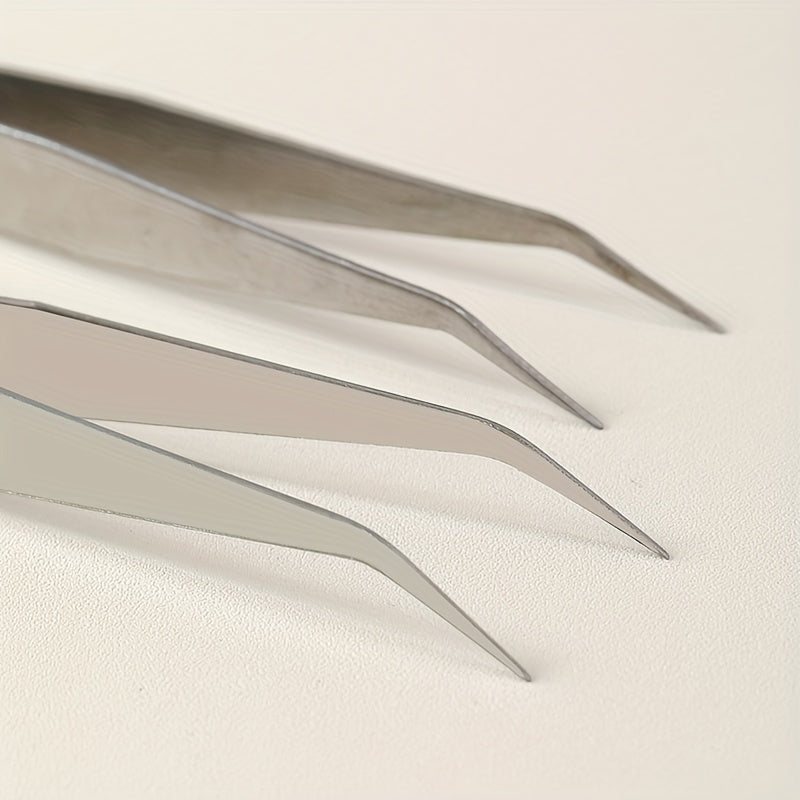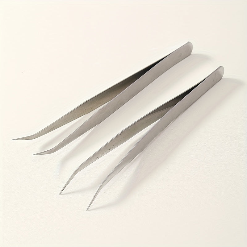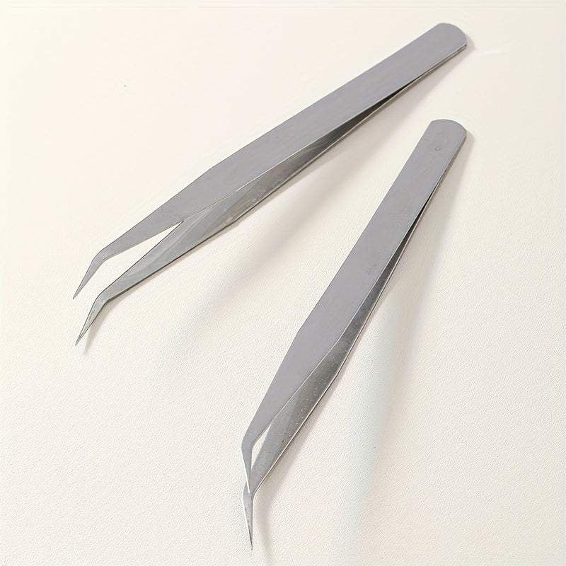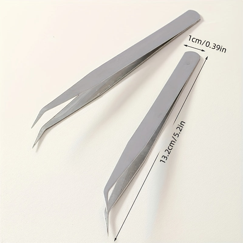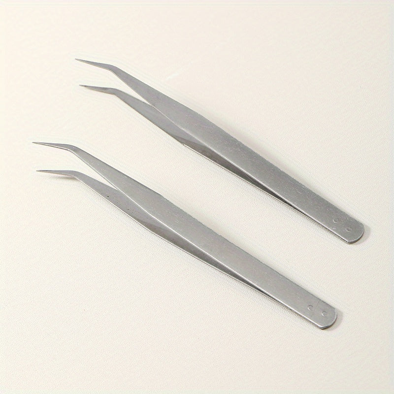 This set includes 2 tweezers with curved pointed tips, ideal for precision tasks like crafting, jewelry-making, and eyebrow grooming.