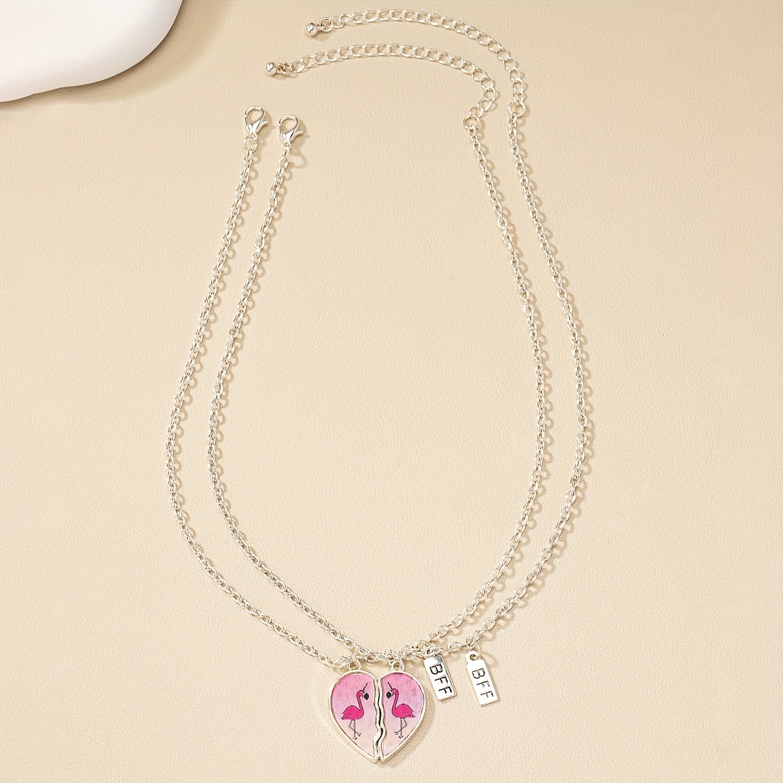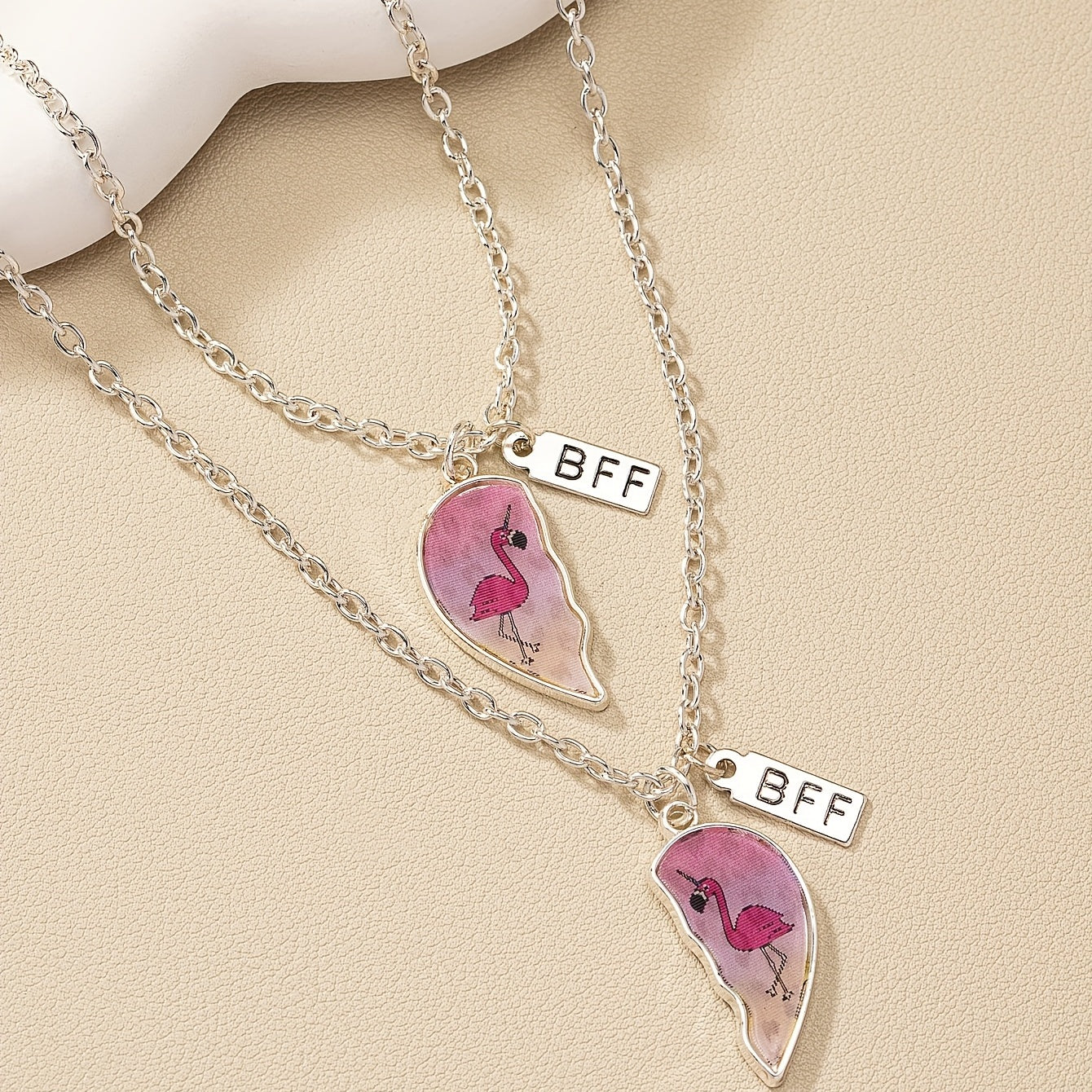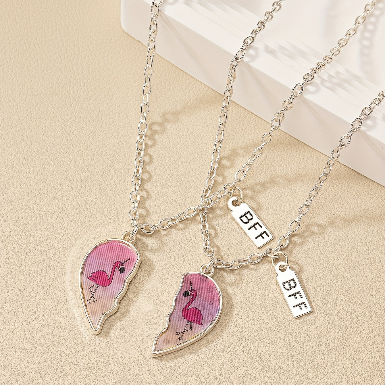 This set includes two heart-shaped pendant necklaces that can be shared between good friends. The perfect gift for besties to show their love and friendship.