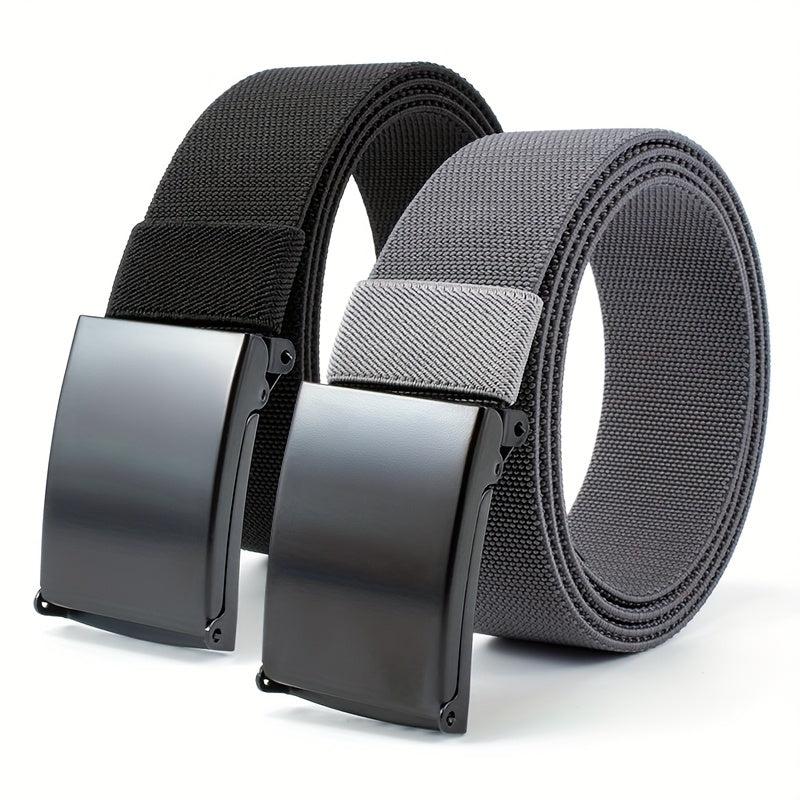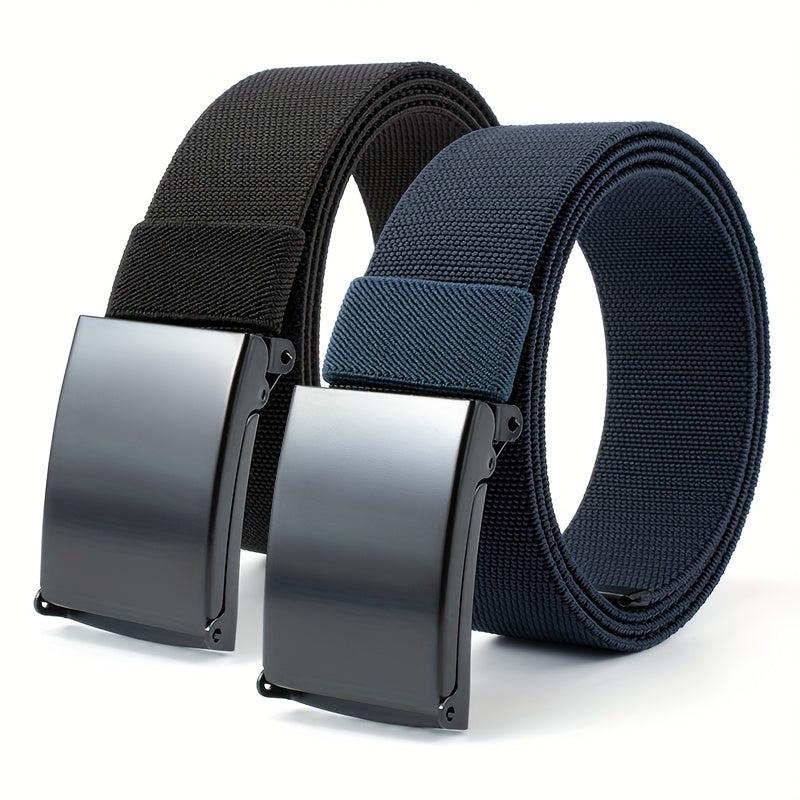 Stay stylish and comfortable with this set of 2 casual elastic sports belts featuring a square button iron buckle. Perfect for daily wear and commuting.