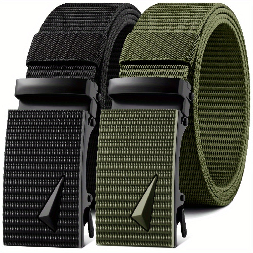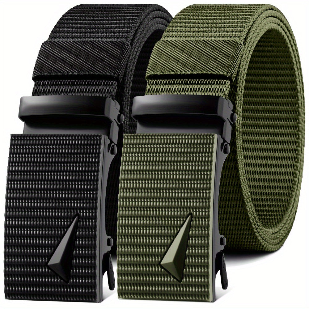Stay stylish and comfortable with these sporty casual nylon ratchet belts. Perfect for outdoor work, shorts, and jeans. Features an iron automatic buckle that is adjustable for a personalized fit.