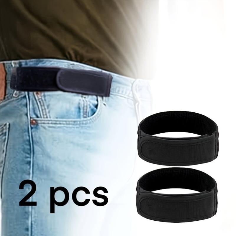 These 2pcs no buckle stretch belts are made from adjustable elastic nylon with comfort padding, offering a sleek and convenient design.