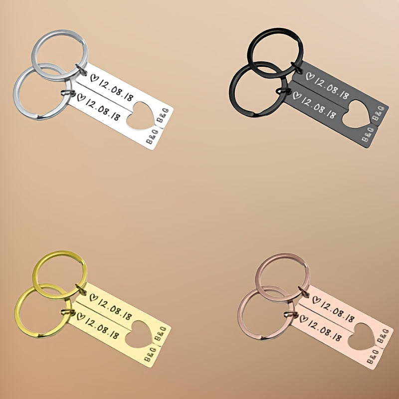 Create a romantic gift for couples with these custom engraved stainless steel keychains. Perfect for anniversaries, birthdays, Valentine's, Mother's or Father's Day.