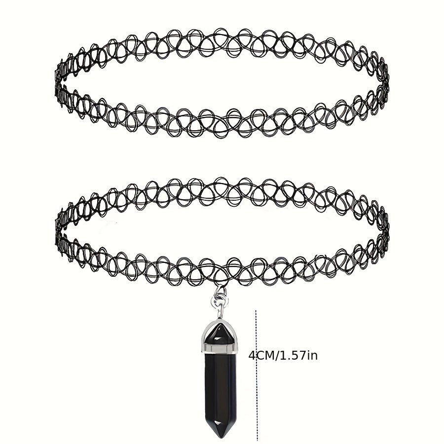 Embrace a vintage vibe with this 2-piece choker set featuring retro quartz hexagonal pendant necklaces, perfect for women and girls. Add a touch of spirituality and Reiki healing with these stylish stone accessories.