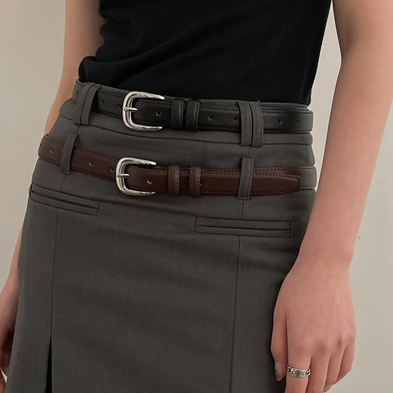 Add a touch of timeless preppy style to your outfit with this set of 2 women's belts. These versatile retro waistbands are perfect for daily wear, college days, weekend outings, and night out. They are light, body-safe, and non-textile, making them comfortable to wear all day. Hand washable for easy care.