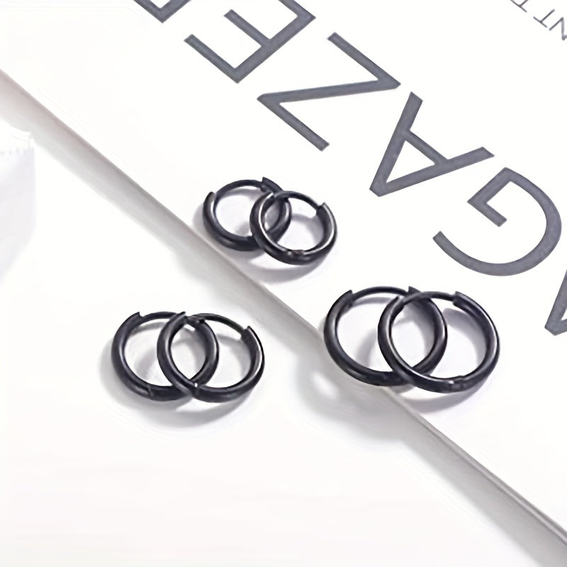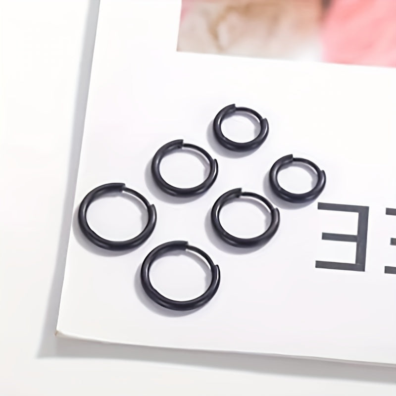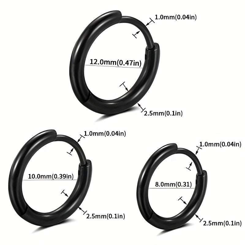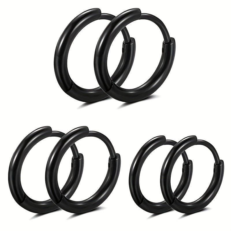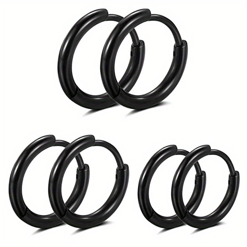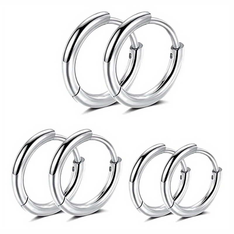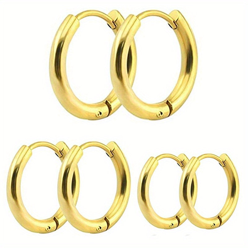 Get this set of 3 pairs of basic stainless steel earrings featuring classic golden and silver colors. The hoop design is versatile and timeless, perfect for everyday wear.
