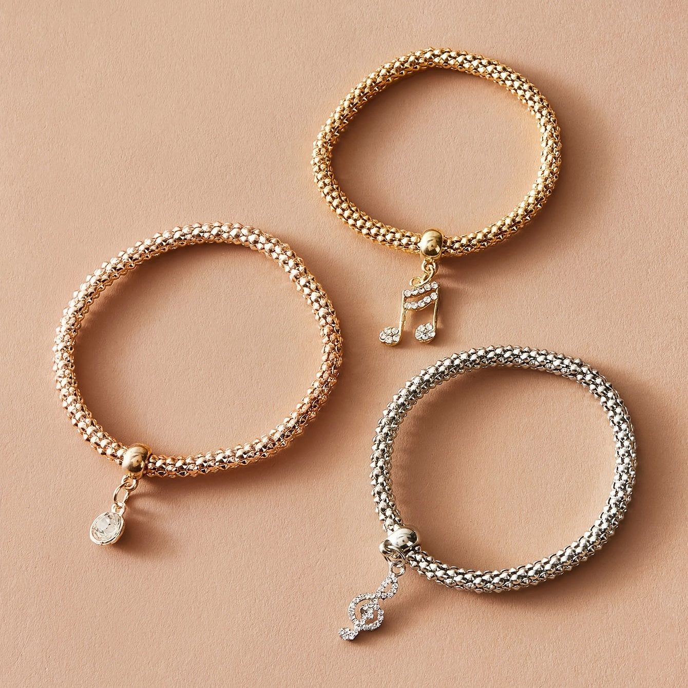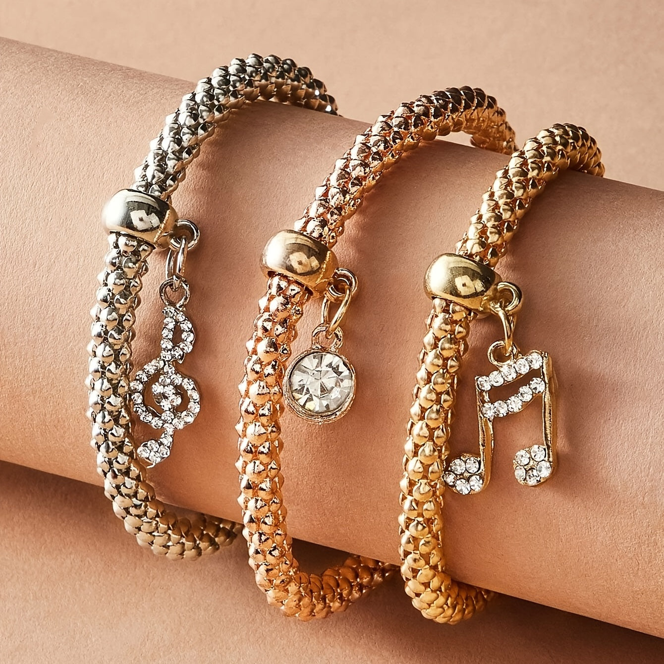 Add a touch of musical charm to your style with these chunky chain bracelets featuring music symbol shape pendants adorned with zircons. Perfect for adding a stylish and elegant touch to your outfits.