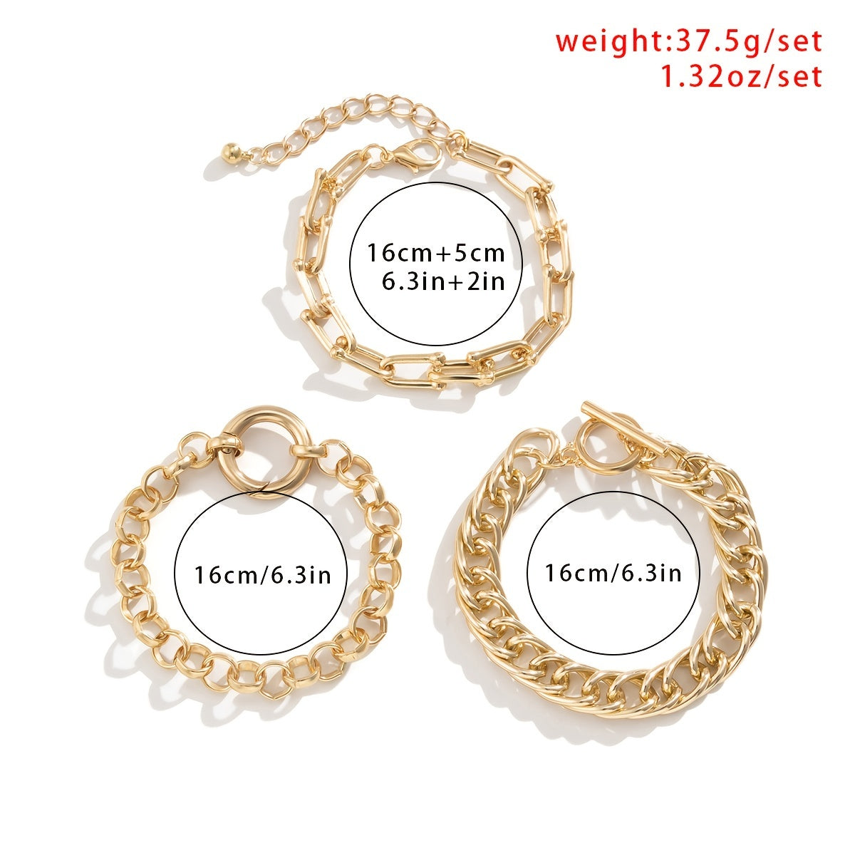 This set includes 3 chunky chain bracelets with a punk style design. They are adjustable and stackable, perfect for adding an edgy touch to your outfit.