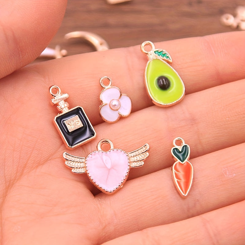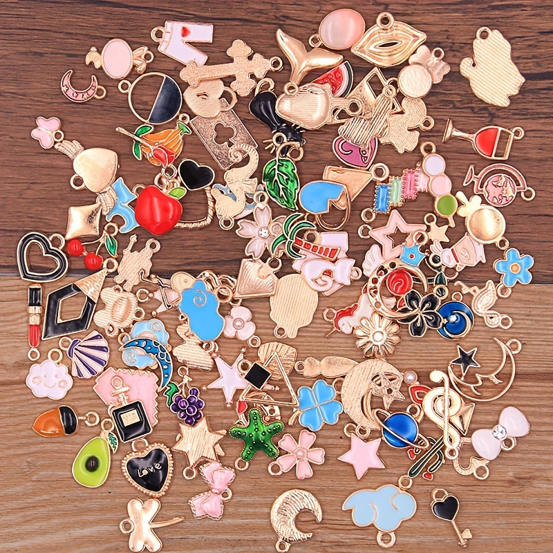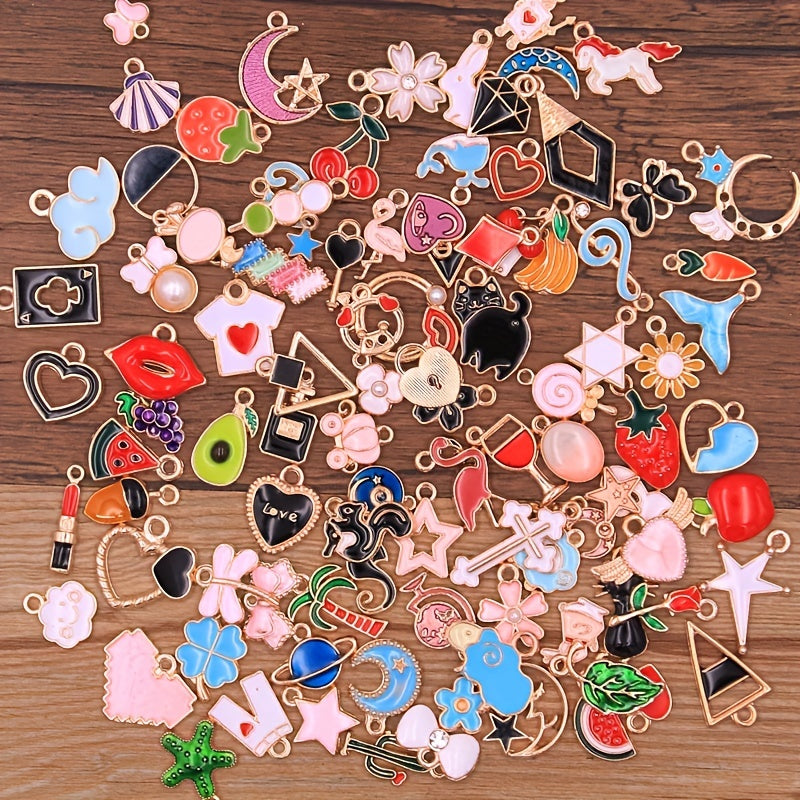 Get a variety of 30 random drop oil charms in 20-100 styles and 5 colors. Perfect for creating bracelets and necklaces.