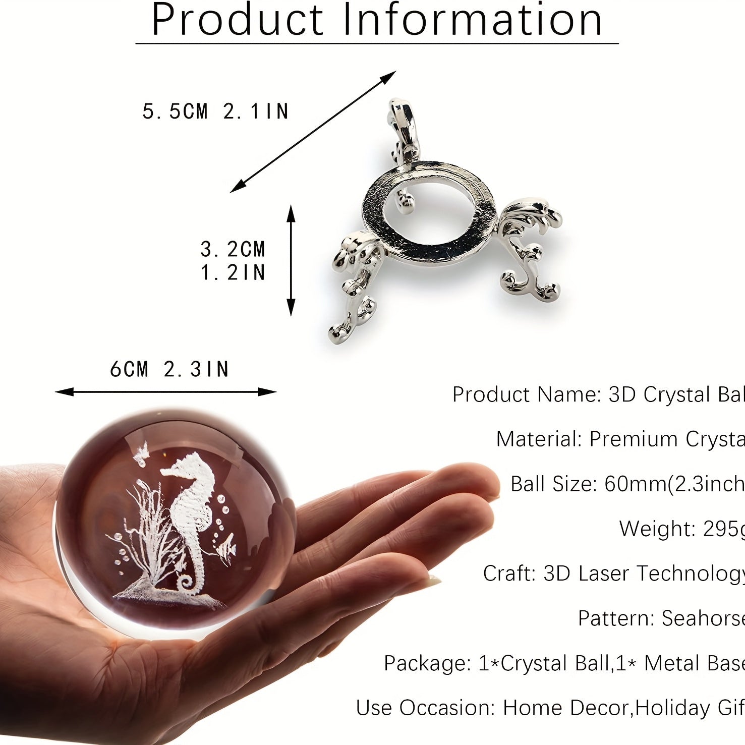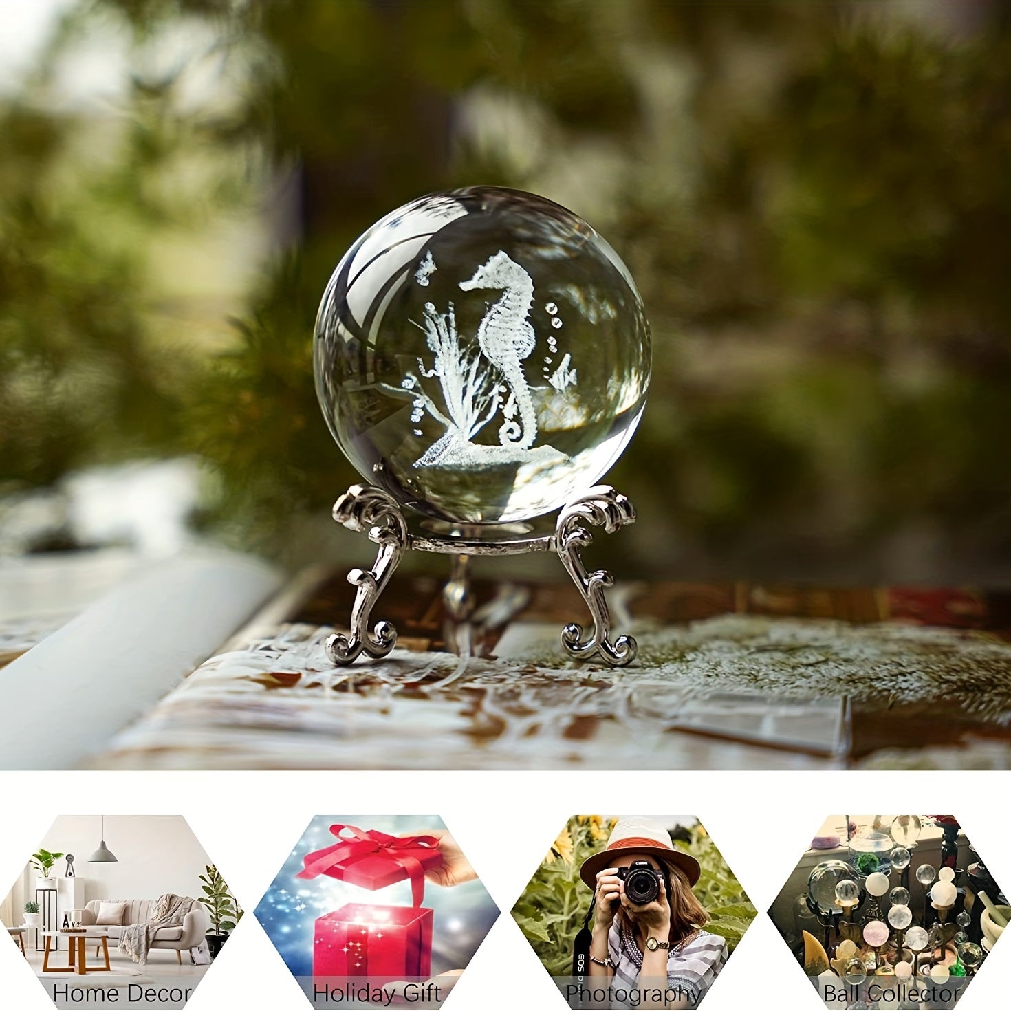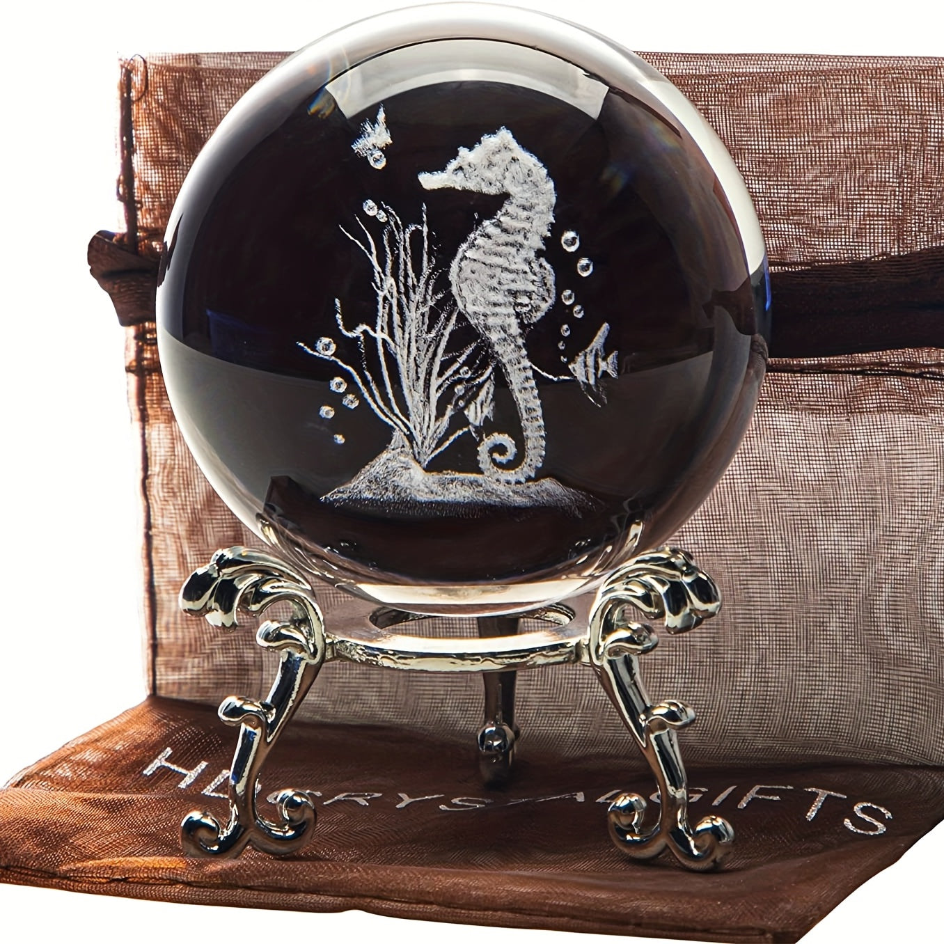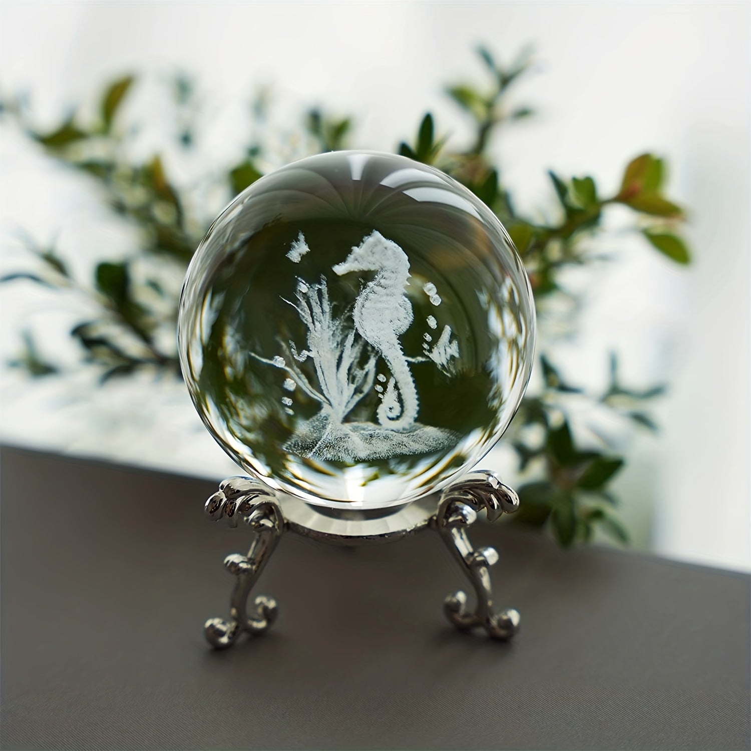 Add a touch of marine beauty to your collection with this exquisite laser-cut seahorse statue crystal ball.