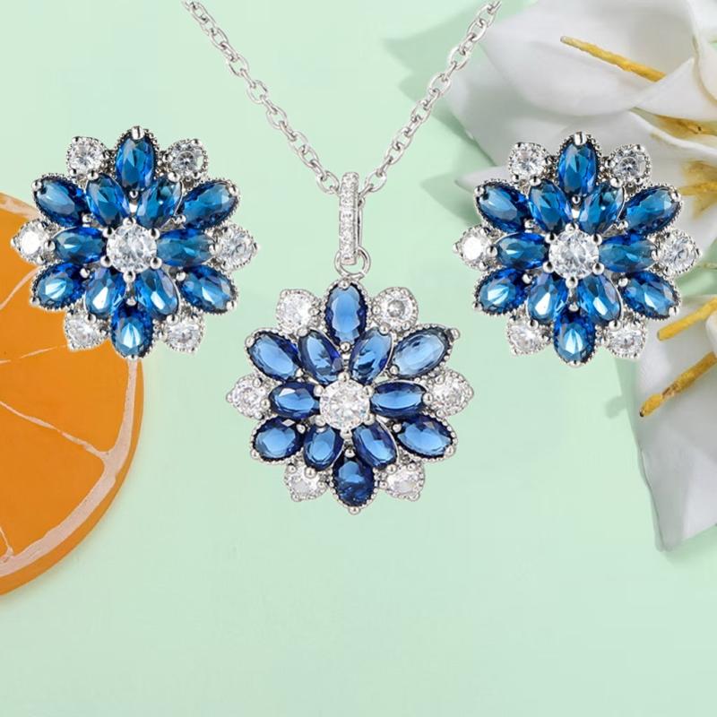 This elegant set features synthetic zirconia in a floral design, perfect for daily wear, parties, weddings, and Valentine's Day. Ideal for couples to celebrate love and style.