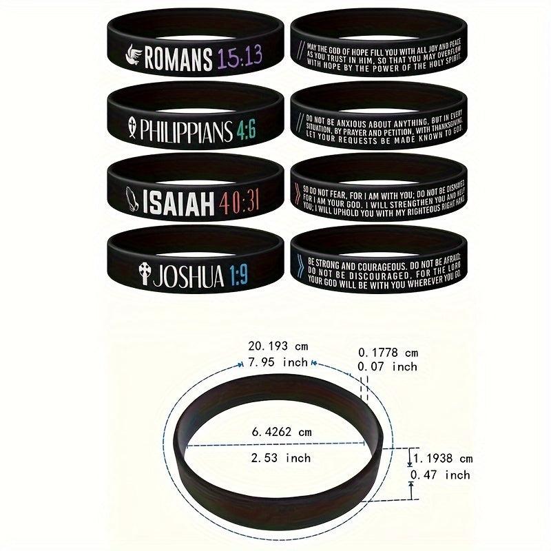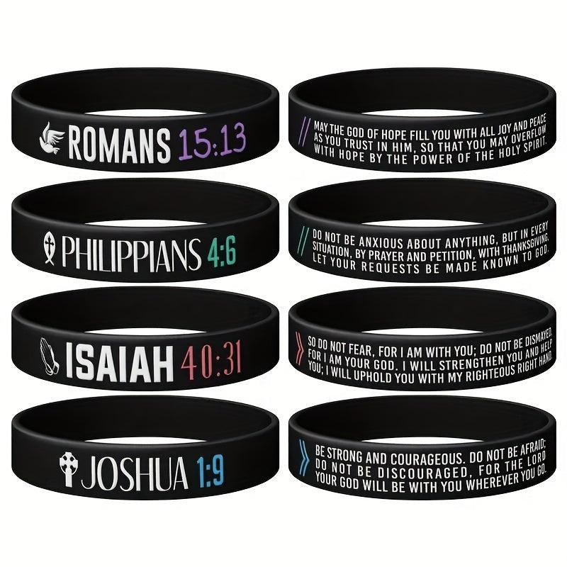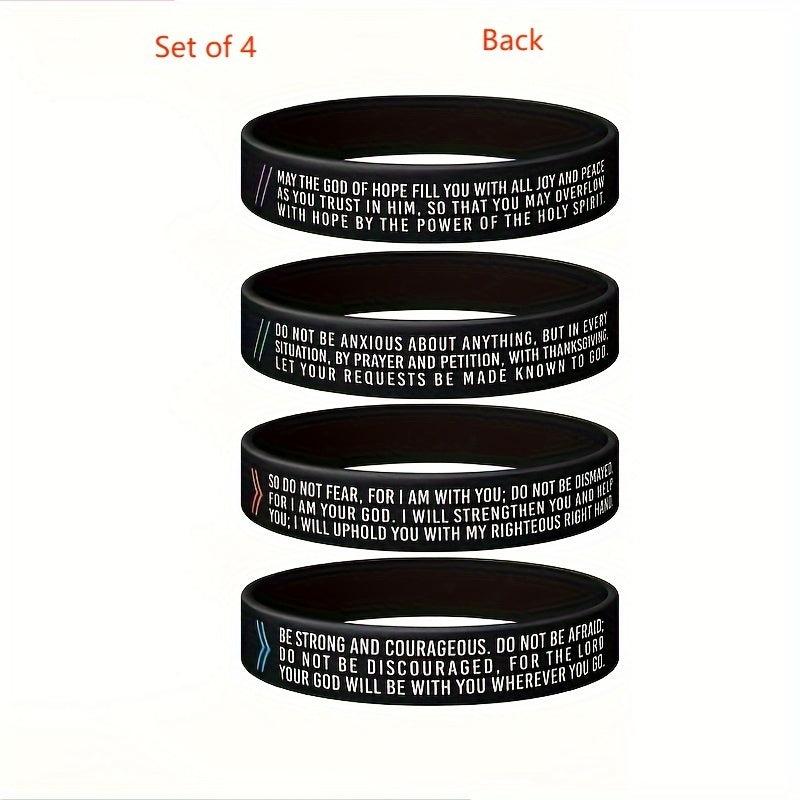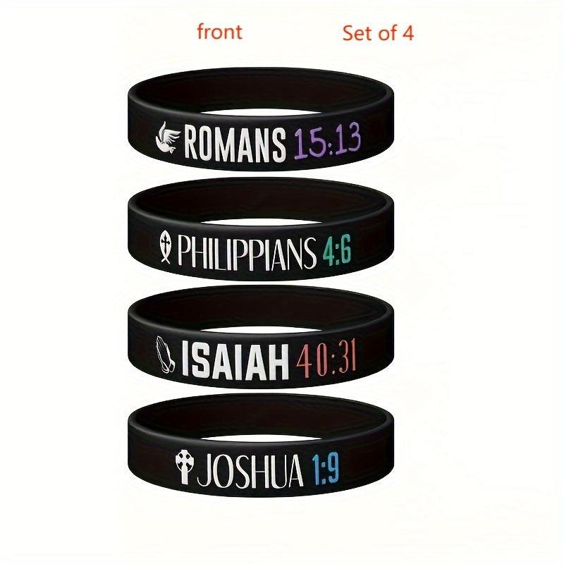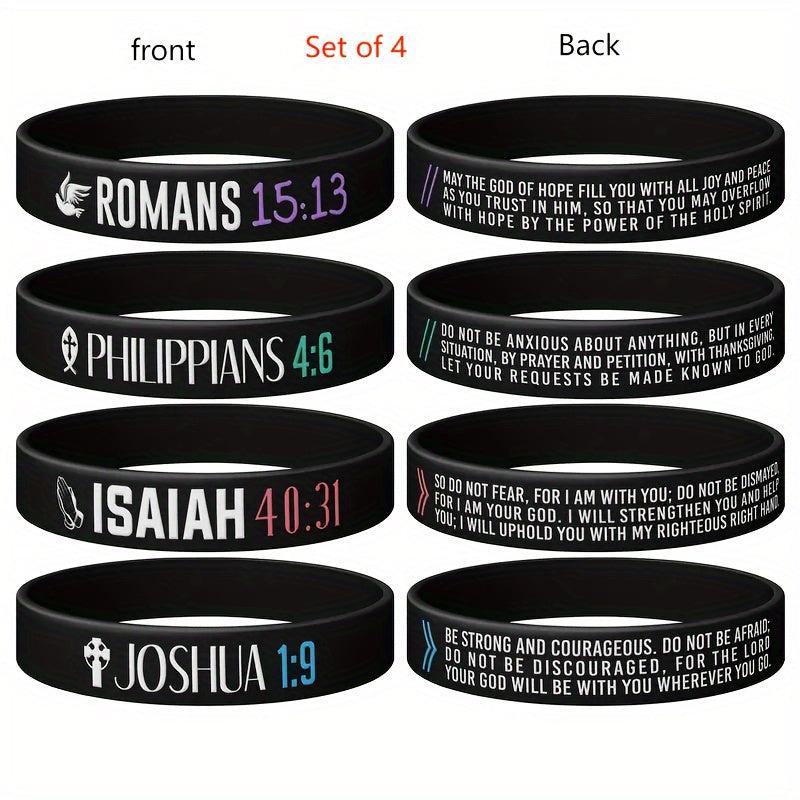 Get inspired with this 4 pack of silicone wristbands featuring uplifting verses from the Bible. These rubber bracelets are perfect for men and women.