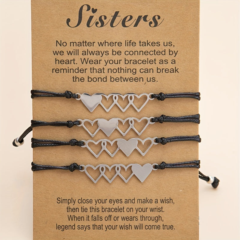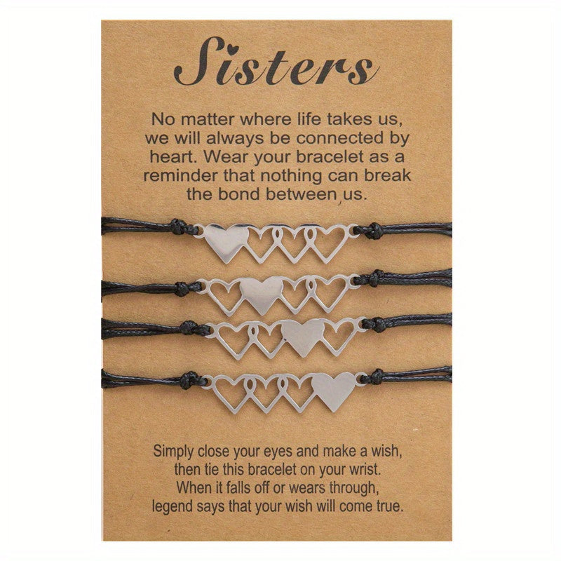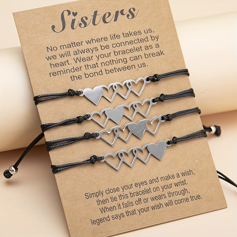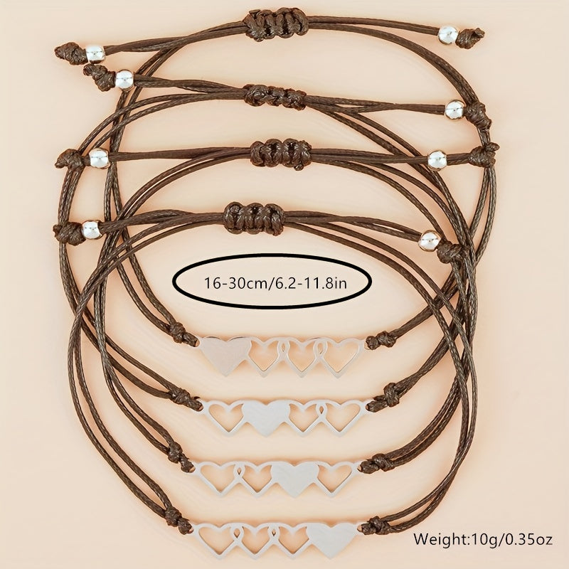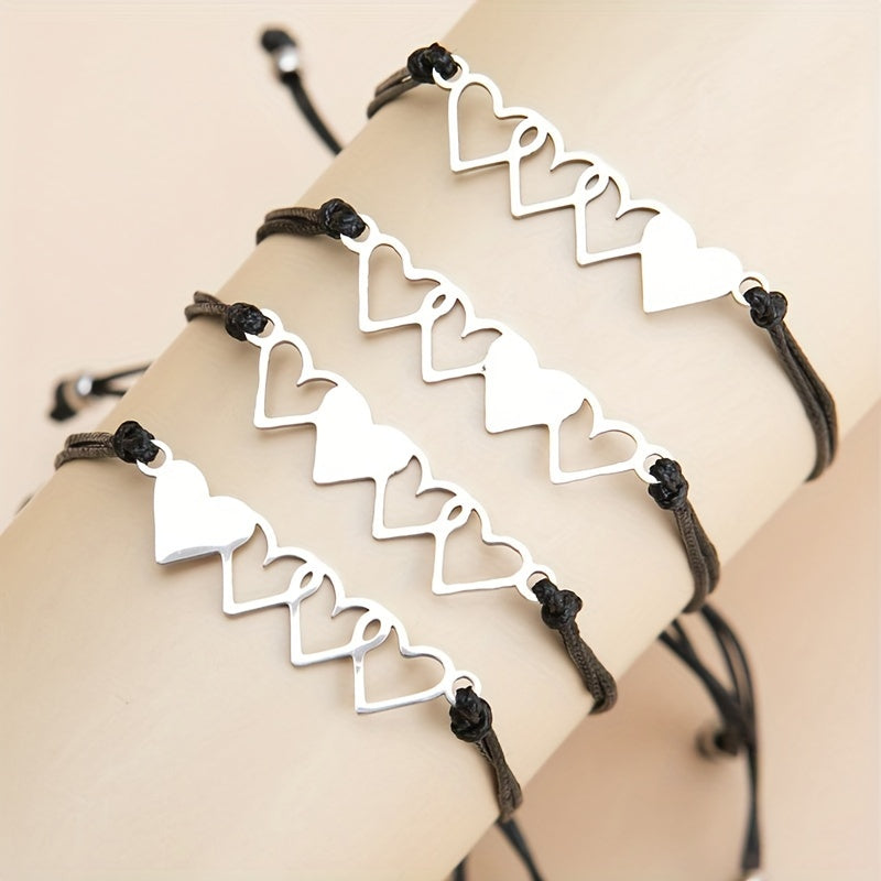 This set includes 4 heart string bracelets perfect for you and your friends to show your love and friendship. Made of high-quality materials, these bracelets are durable and comfortable to wear. Great for everyday wear or special occasions.