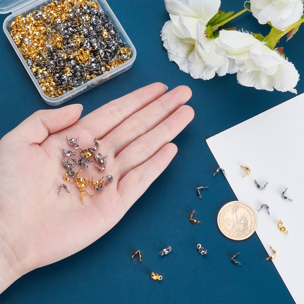 Get this pack of 400 stainless steel bead tips to finish your jewelry projects with a professional touch. These open bead tips are perfect for securing knots, covering ends, and crimping cords.