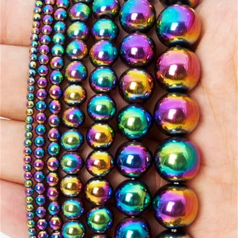 This strand of 45 8mm rainbow hematite beads is perfect for creating beautiful bracelets, necklaces, and other jewelry pieces. The beads have a natural shine and unique color variations that will add an elegant touch to your designs.