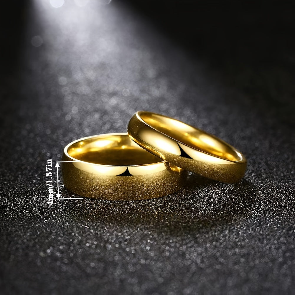 This stylish and unique curved ring features a 4mm golden, silver, and multicolor inner and outer ball design. Perfect for couples looking to express their love with matching rings.
