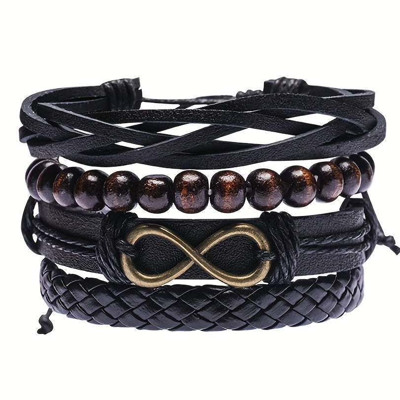 Embrace a vintage look with this 4pcs braided bracelet set. Crafted for men, these bracelets offer a layered style that exudes charm and character. Perfect for casual or formal wear.
