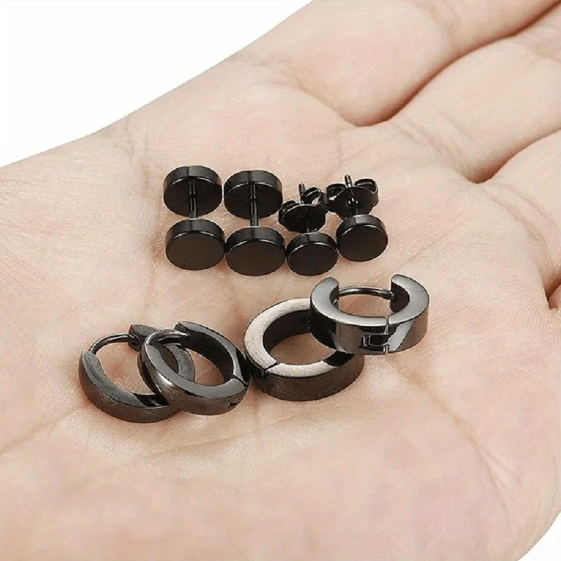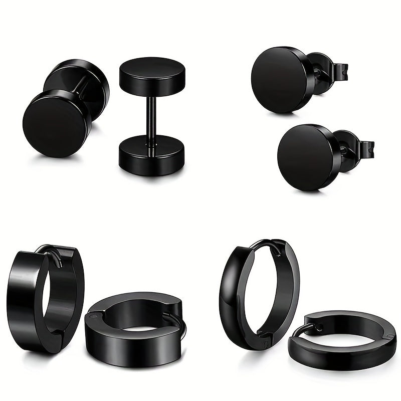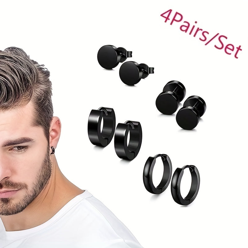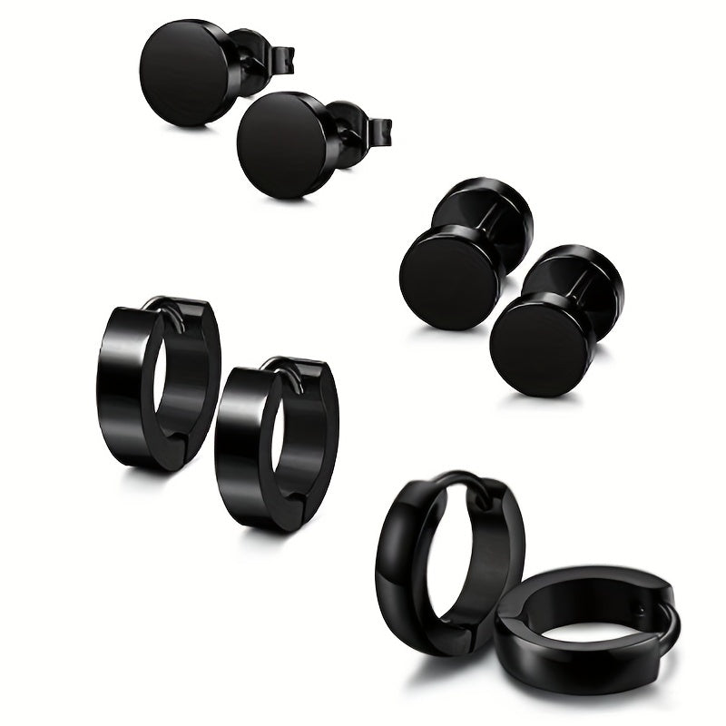 Enhance your style with this 4-piece set of men's stainless steel dumbbell earrings. Choose from mixed styles to add a masculine touch to your look.