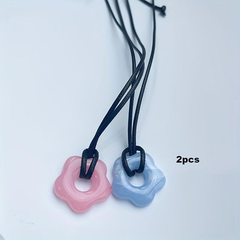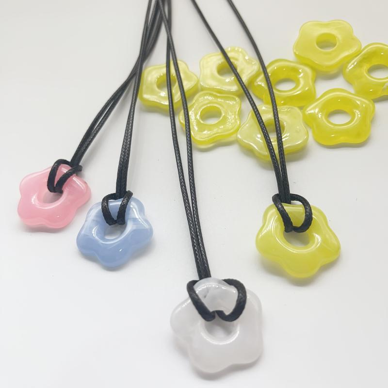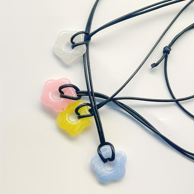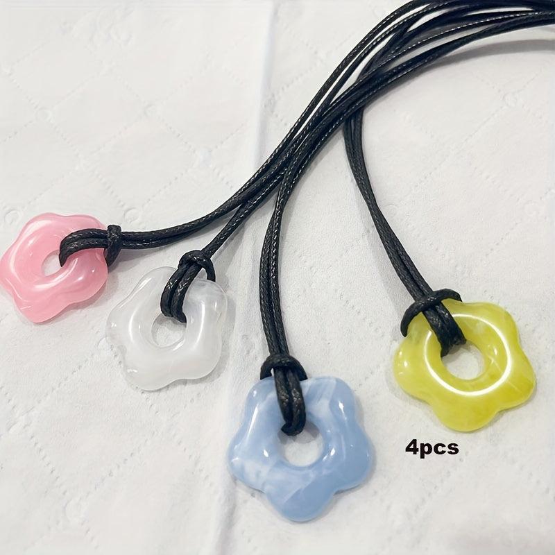 This set includes 4 colorful acrylic flower necklace pendants that are perfect for daily wear or as holiday gifts for friends. The vibrant colors and versatile design make them a great addition to any outfit.
