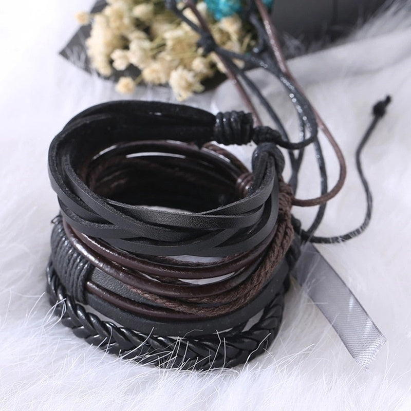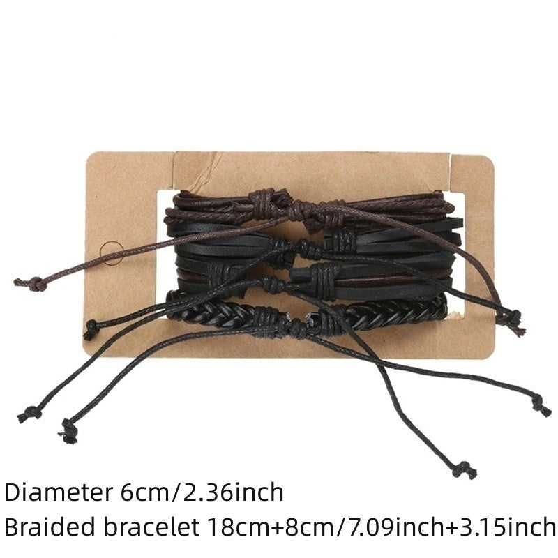 This set includes 4 vintage faux leather braided rope bracelets, suitable for both men and women. A stylish accessory to complement your outfit.