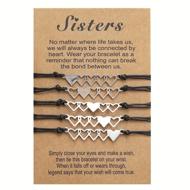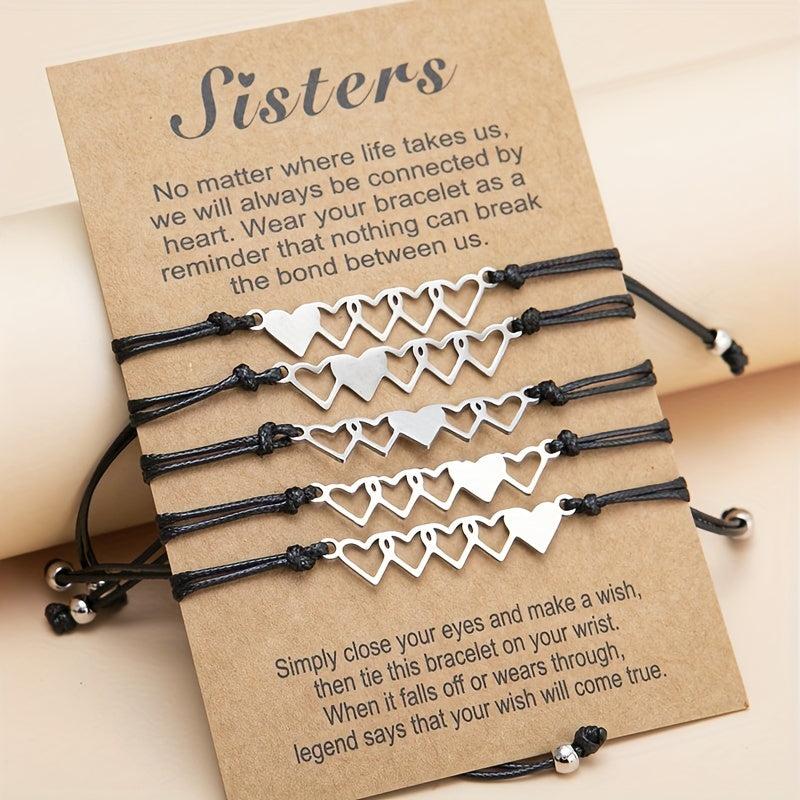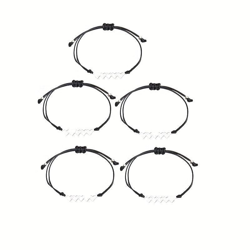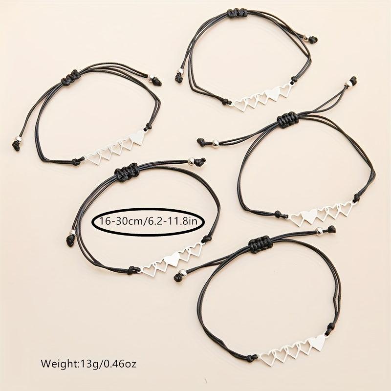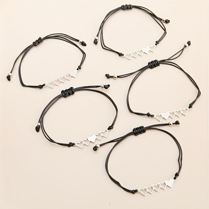 Show your love and friendship with this set of 5 heart string bracelets. Perfect gift for your best friends. Each bracelet is designed with a unique color combination.