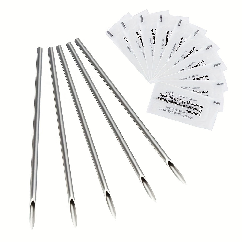 Get this pack of 5 disposable body piercing needles for safe and easy piercing. Suitable for ear, nose, lip, and nipple piercings.