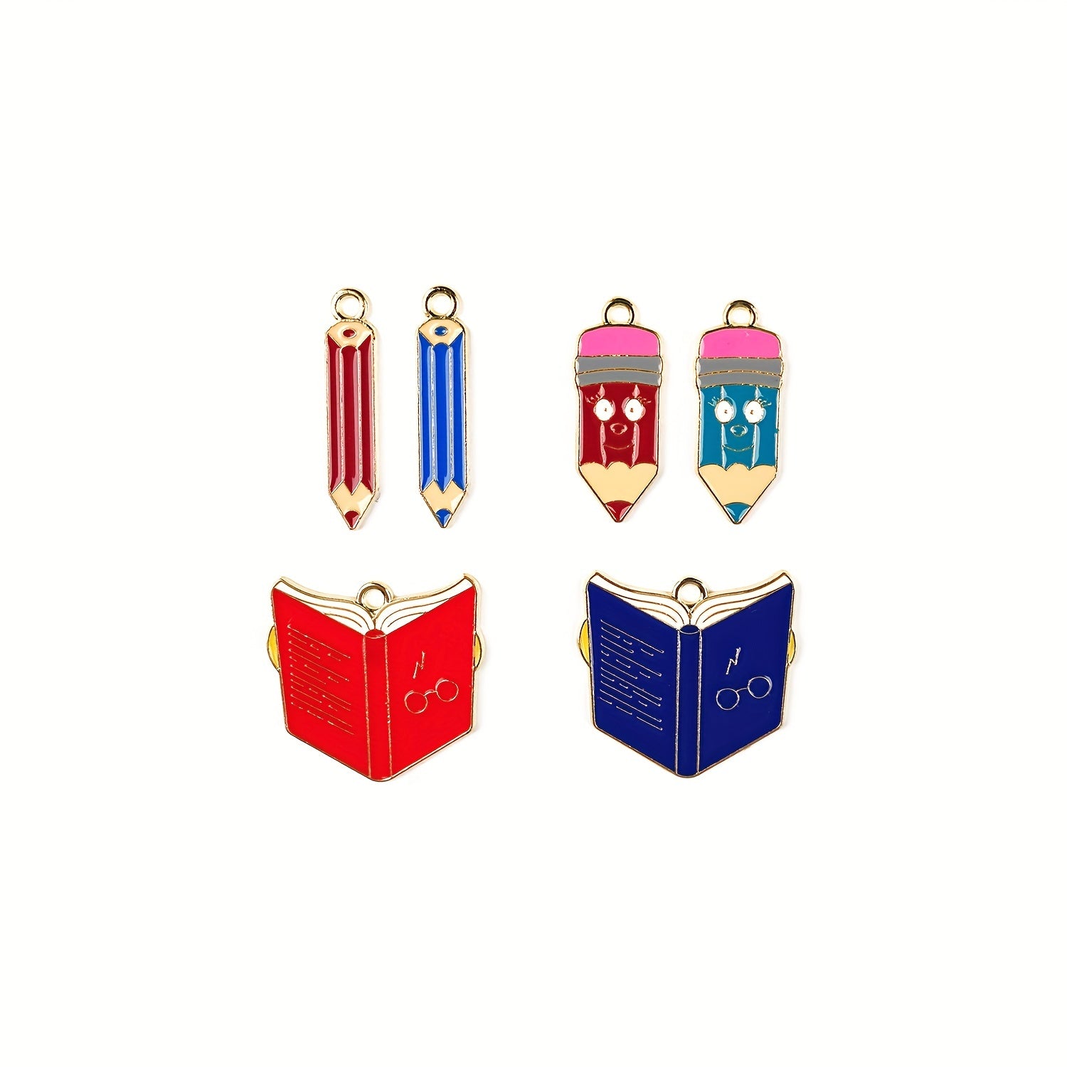 Celebrate graduation season with these charming book, pencil, and crayon charms. Ideal for creating earrings, necklaces, and bracelets. Perfect for anime theme jewelry and teacher's gifts.